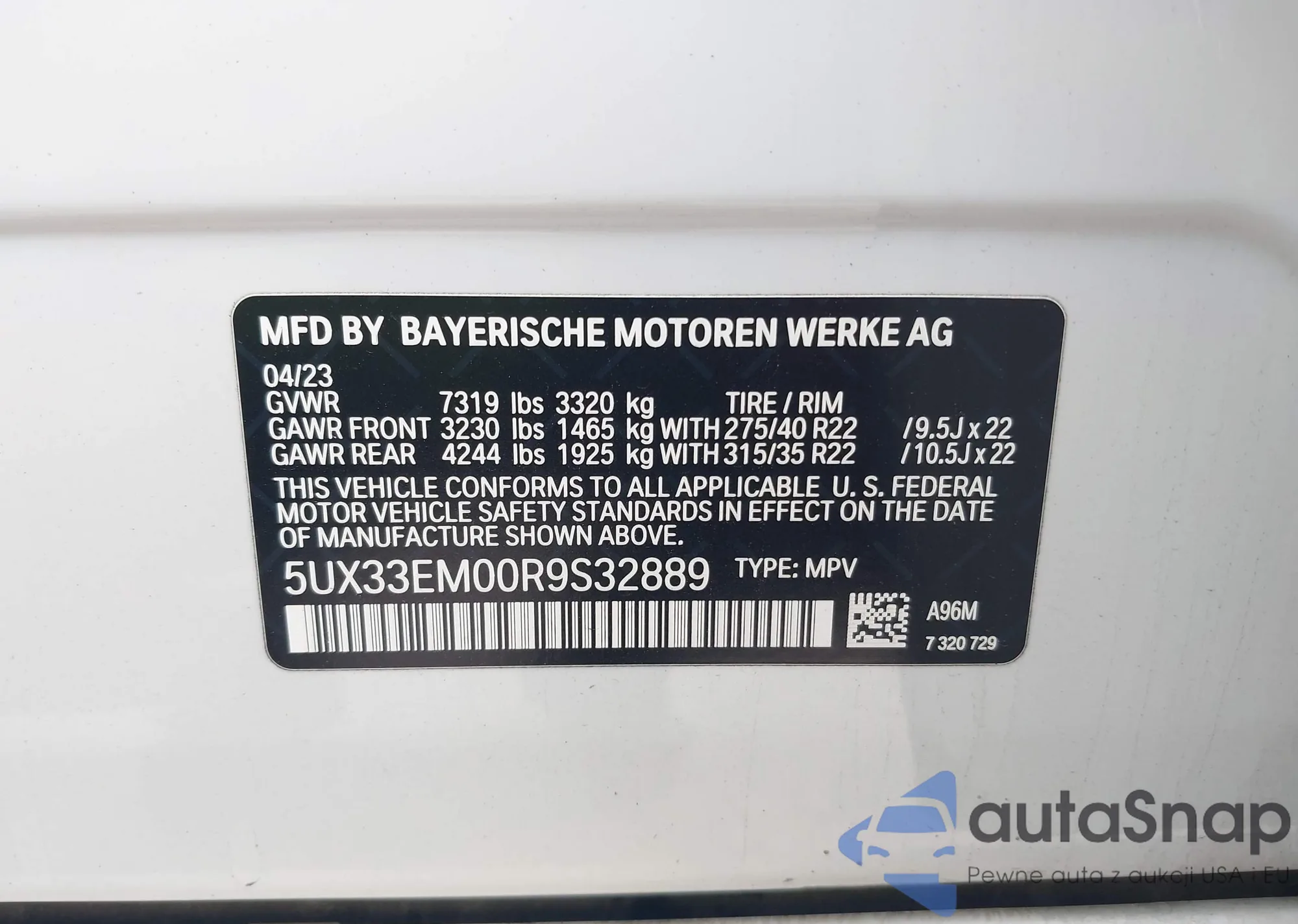 • VIN 5UX33EM00R9S32889