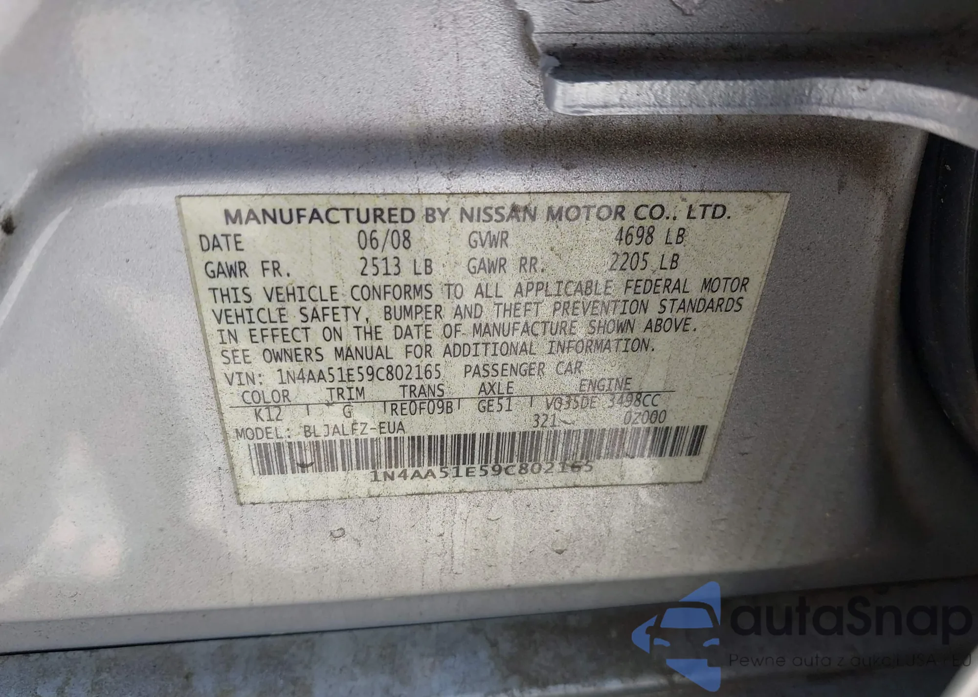 LOT: 42002942 VIN: 1N4AA51E59C802165