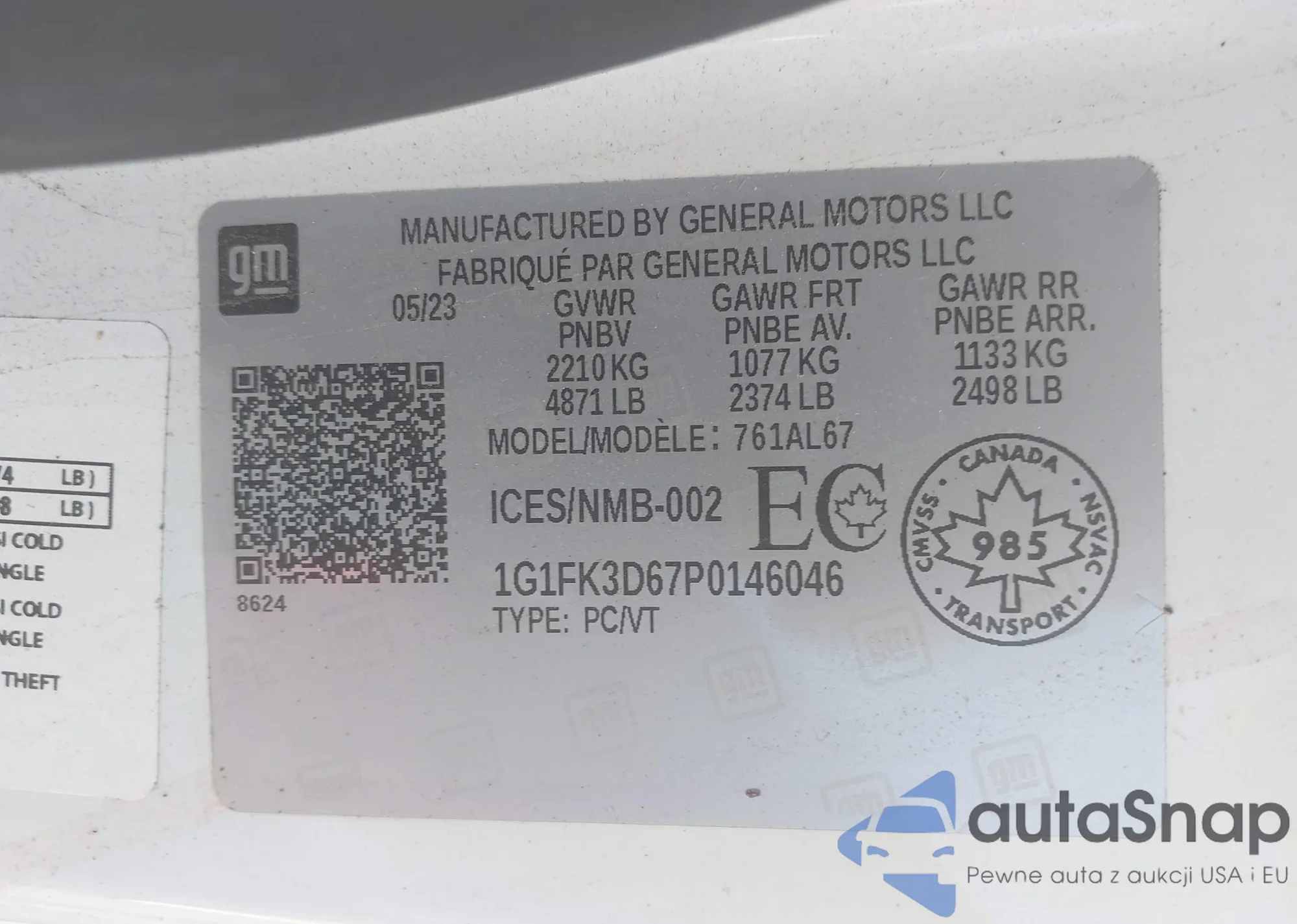 • VIN 1G1FK3D67P0146046