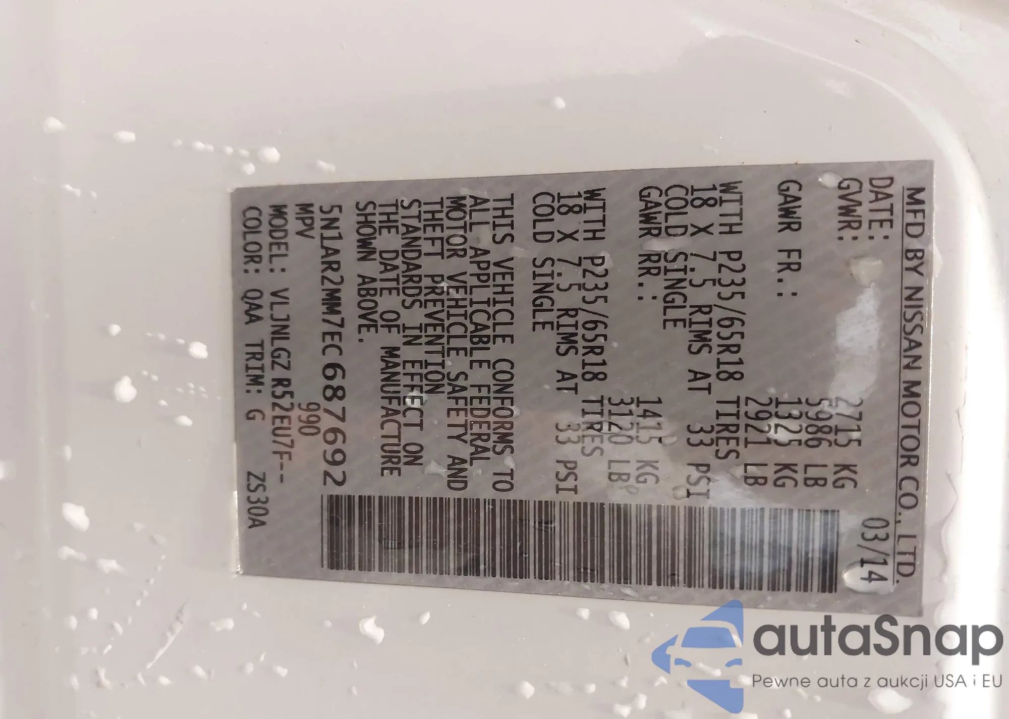 LOT: 42118491 VIN: 5N1AR2MM7EC687692
