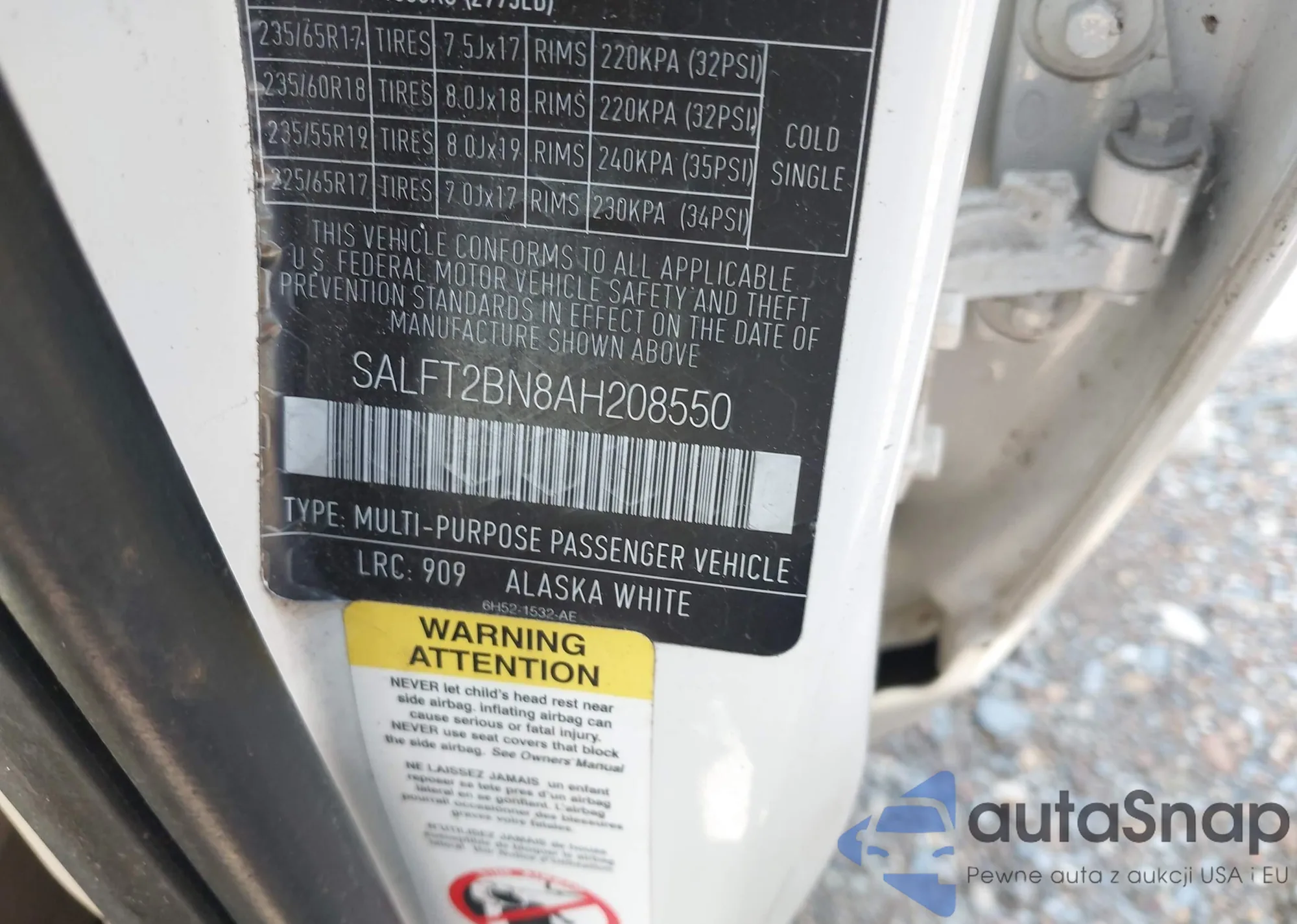 LOT: 41738140 VIN: SALFT2BN8AH208550