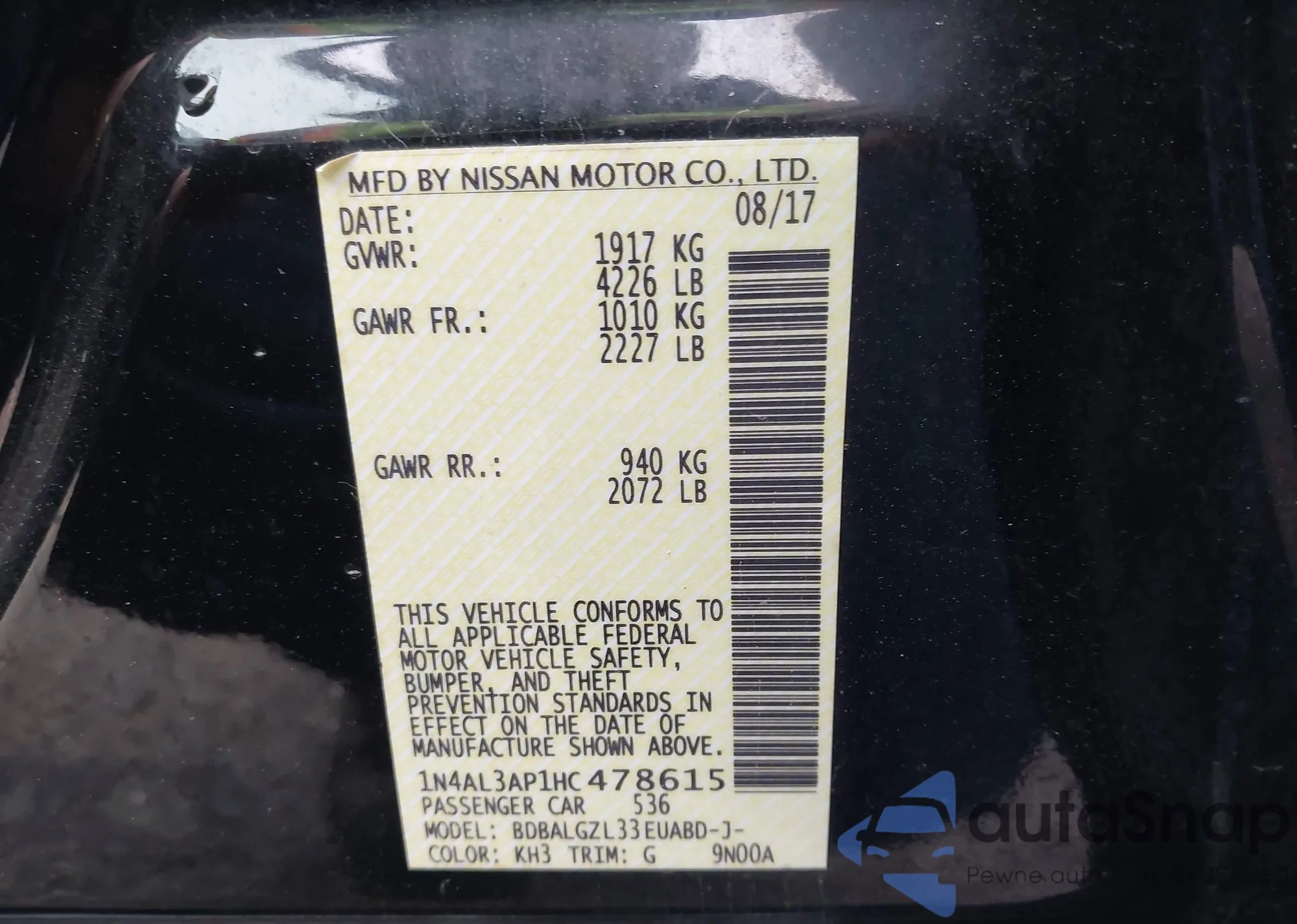LOT: 42006056 VIN: 1N4AL3AP1HC478615