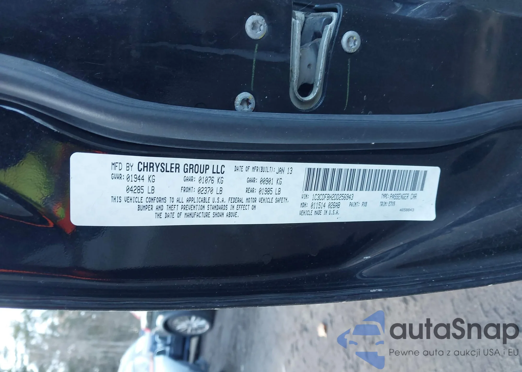 • VIN 1C3CDFBH2DD256943