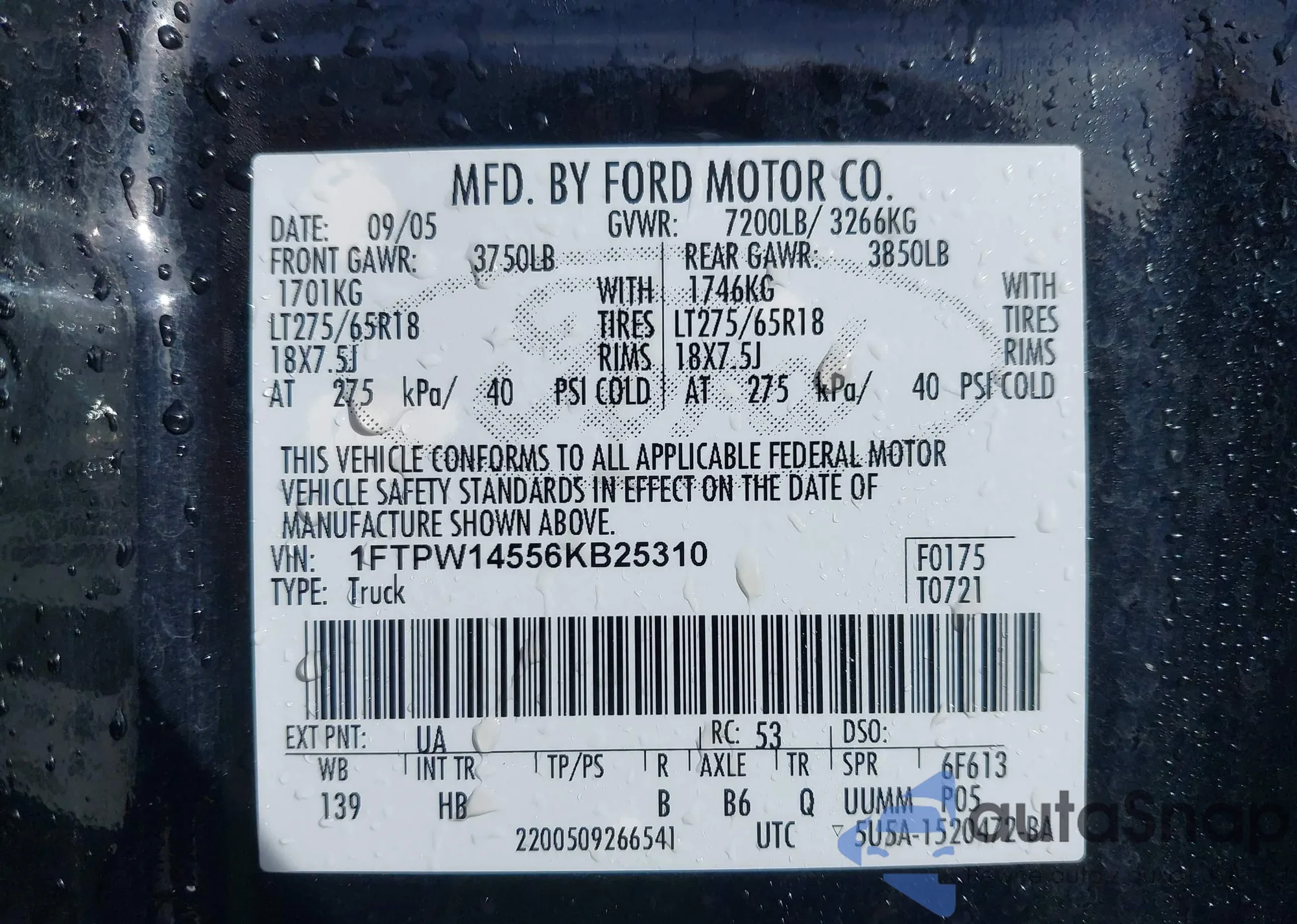 • VIN 1FTPW14556KB25310