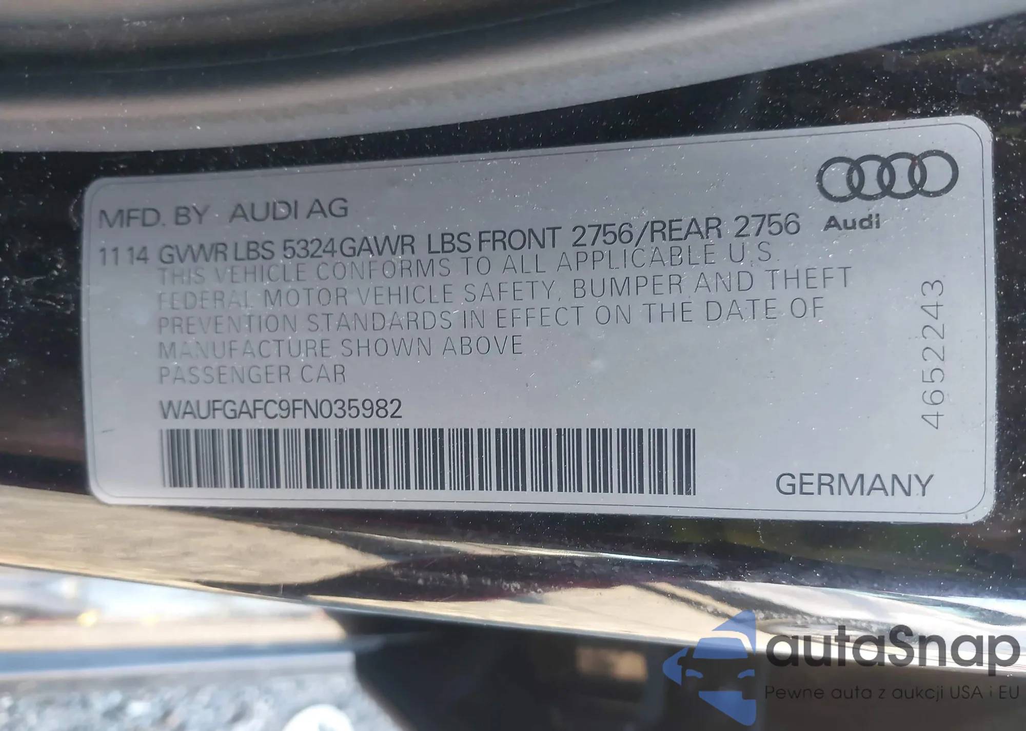 LOT: 41832535 VIN: WAUFGAFC9FN035982