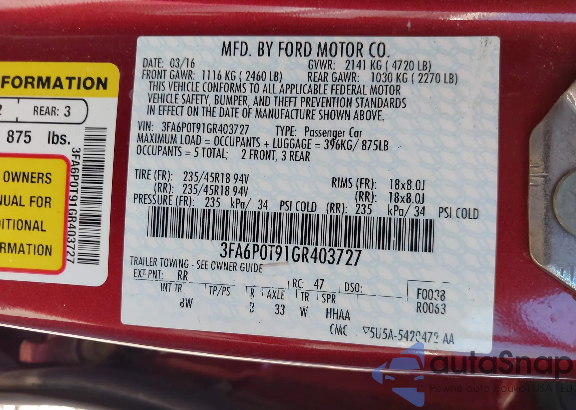 • VIN 3FA6P0T91GR403727