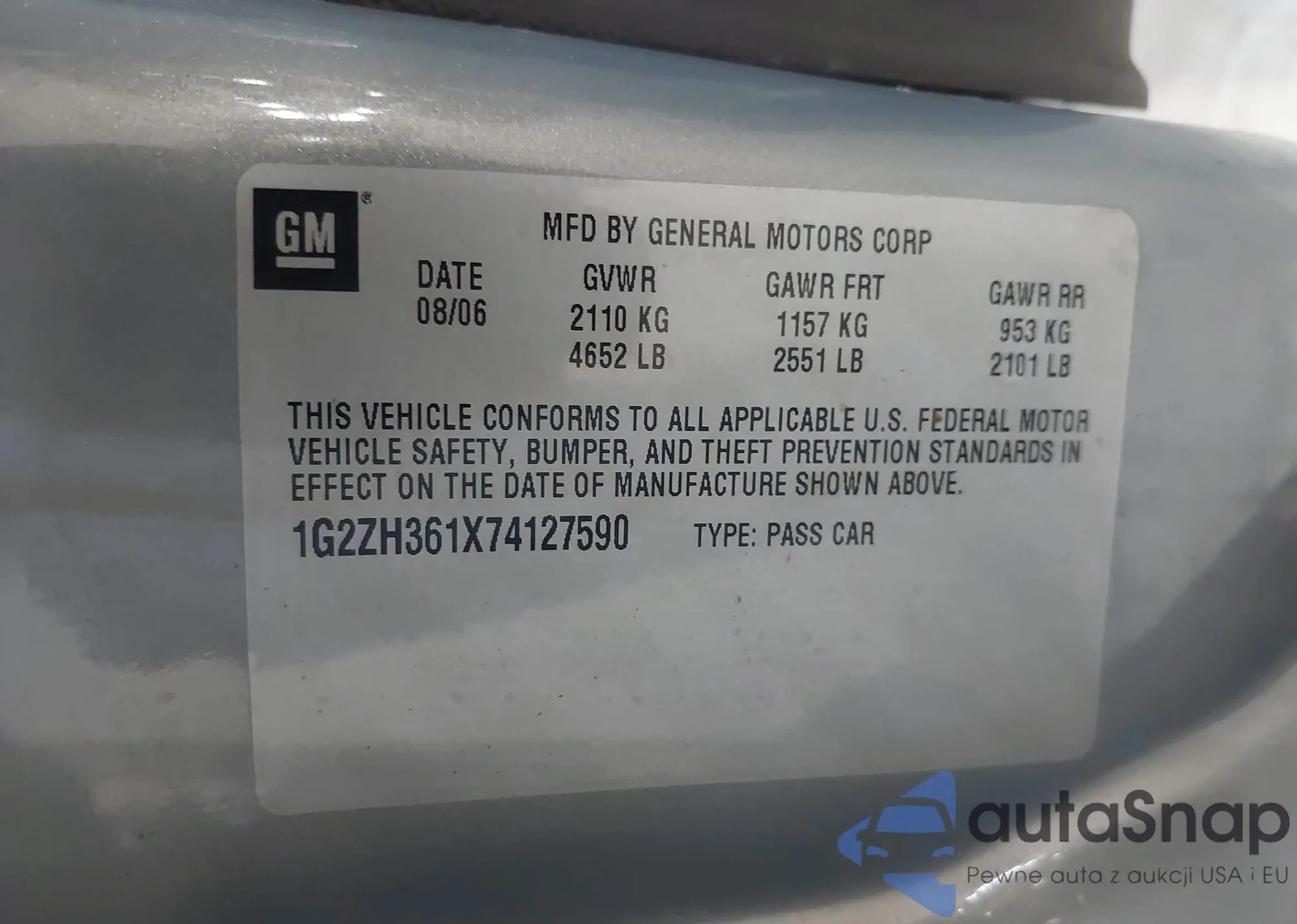 LOT: 41828684 VIN: 1G2ZH361X74127590