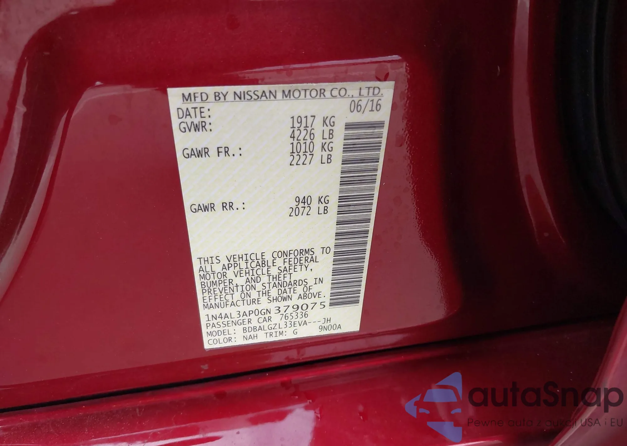 LOT: 41874862 VIN: 1N4AL3AP0GN379075
