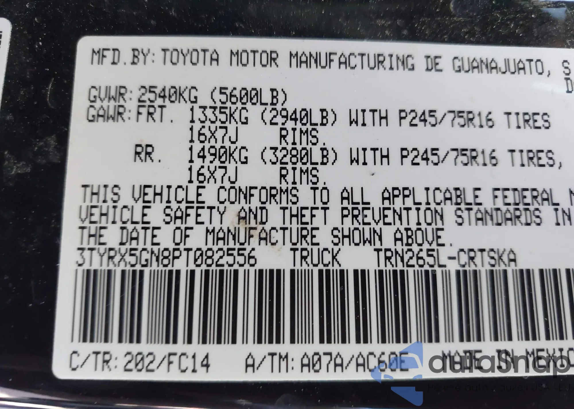 • VIN 5TFMU4FNXDX013268