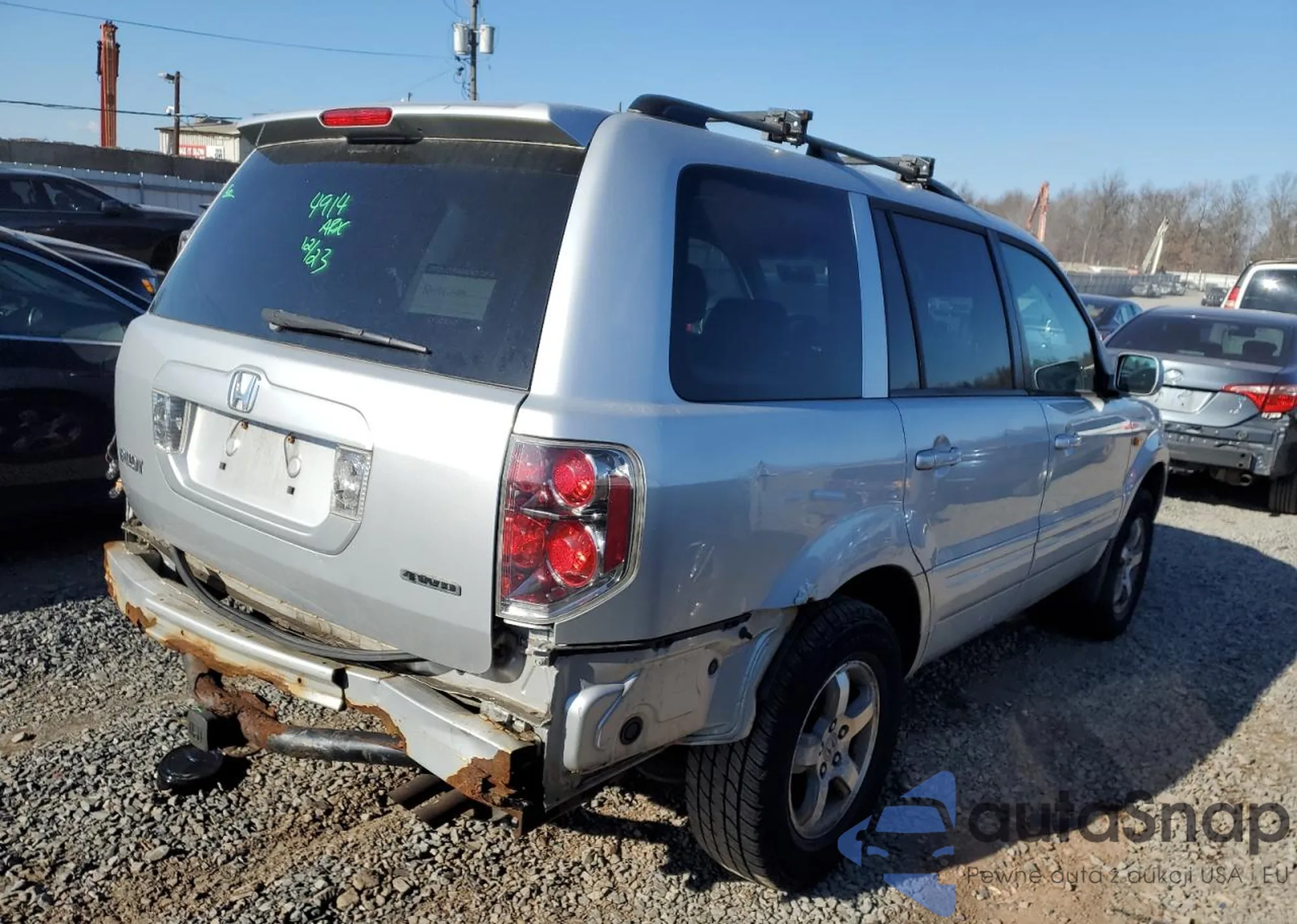 2007 Honda Pilot Exl from USA, damaged, VIN 2HKYF18567H518554