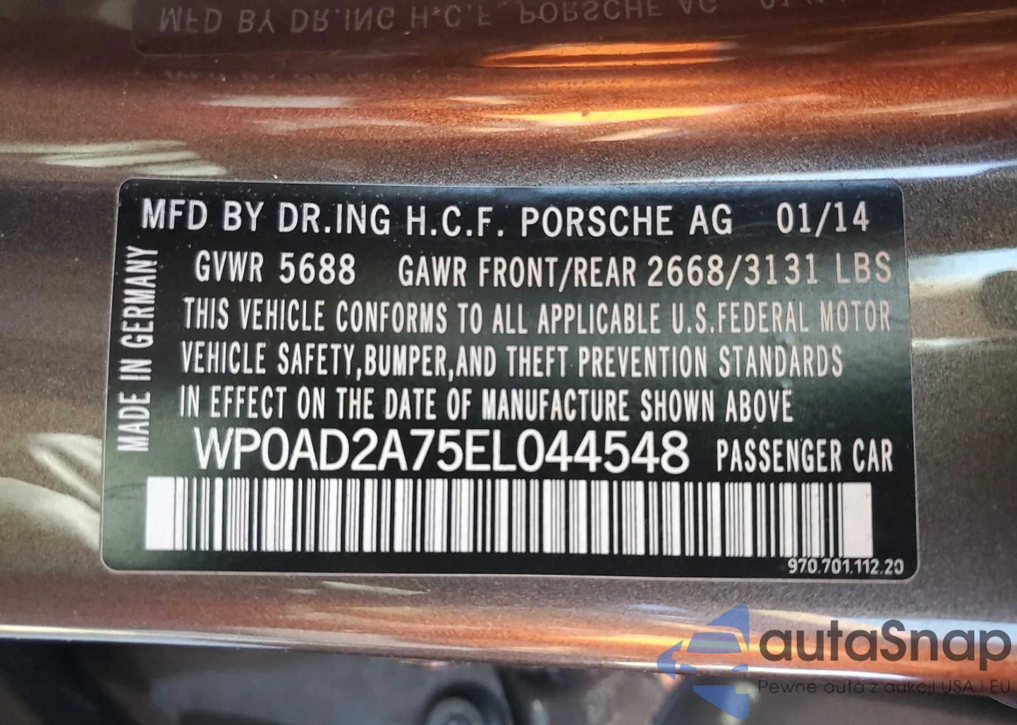 LOT: 47578765 VIN: WP0AD2A75EL044548