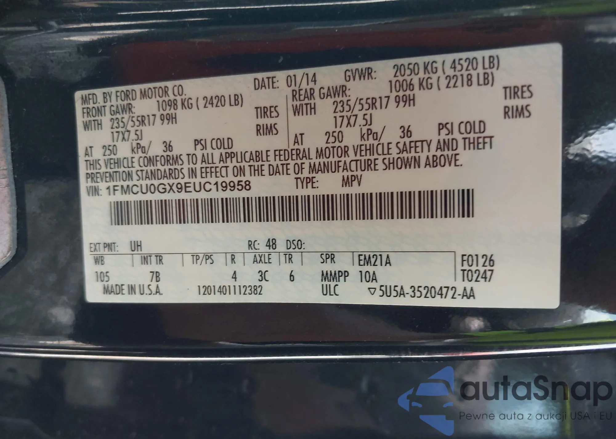 LOT: 41675072 VIN: YV4952CY6E1703087