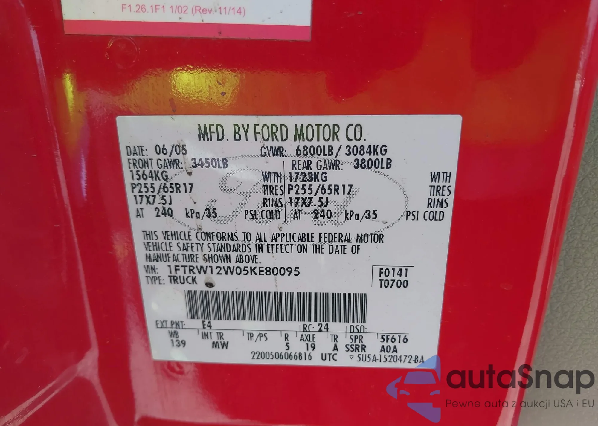 • VIN 1FTRW12W05KE80095