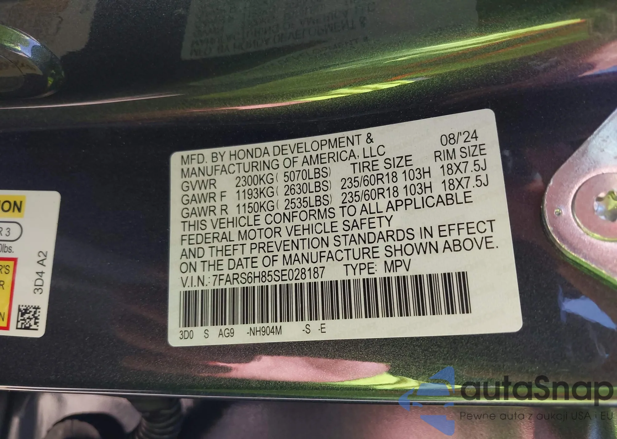 LOT: 42164930 VIN: 7FARS6H85SE028187
