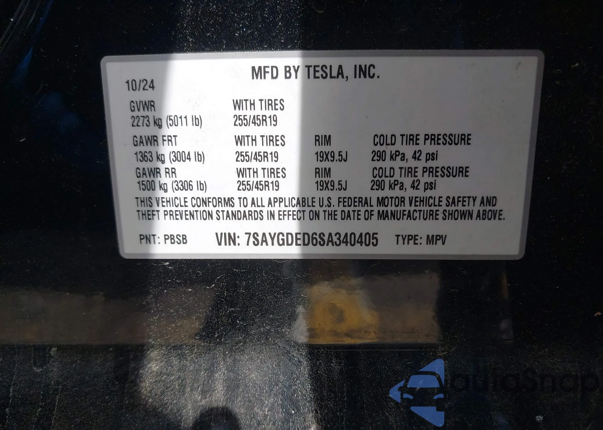• VIN 7SAYGDED6SA340405