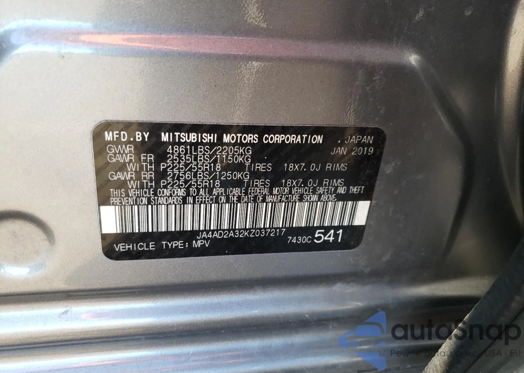 LOT: 60571432 VIN: JA4AD2A32KZ037217