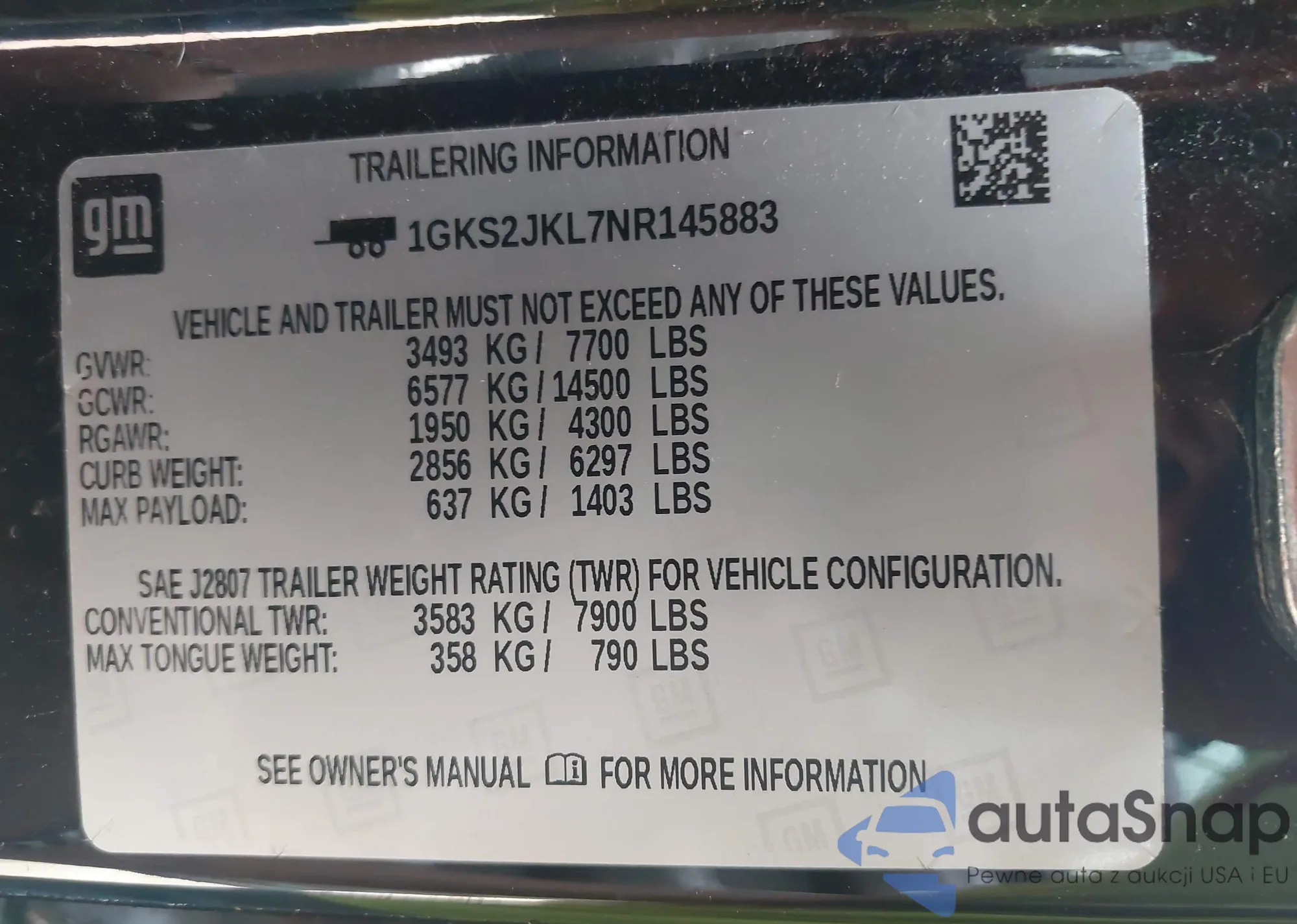 • VIN 1GKS2JKL7NR145883