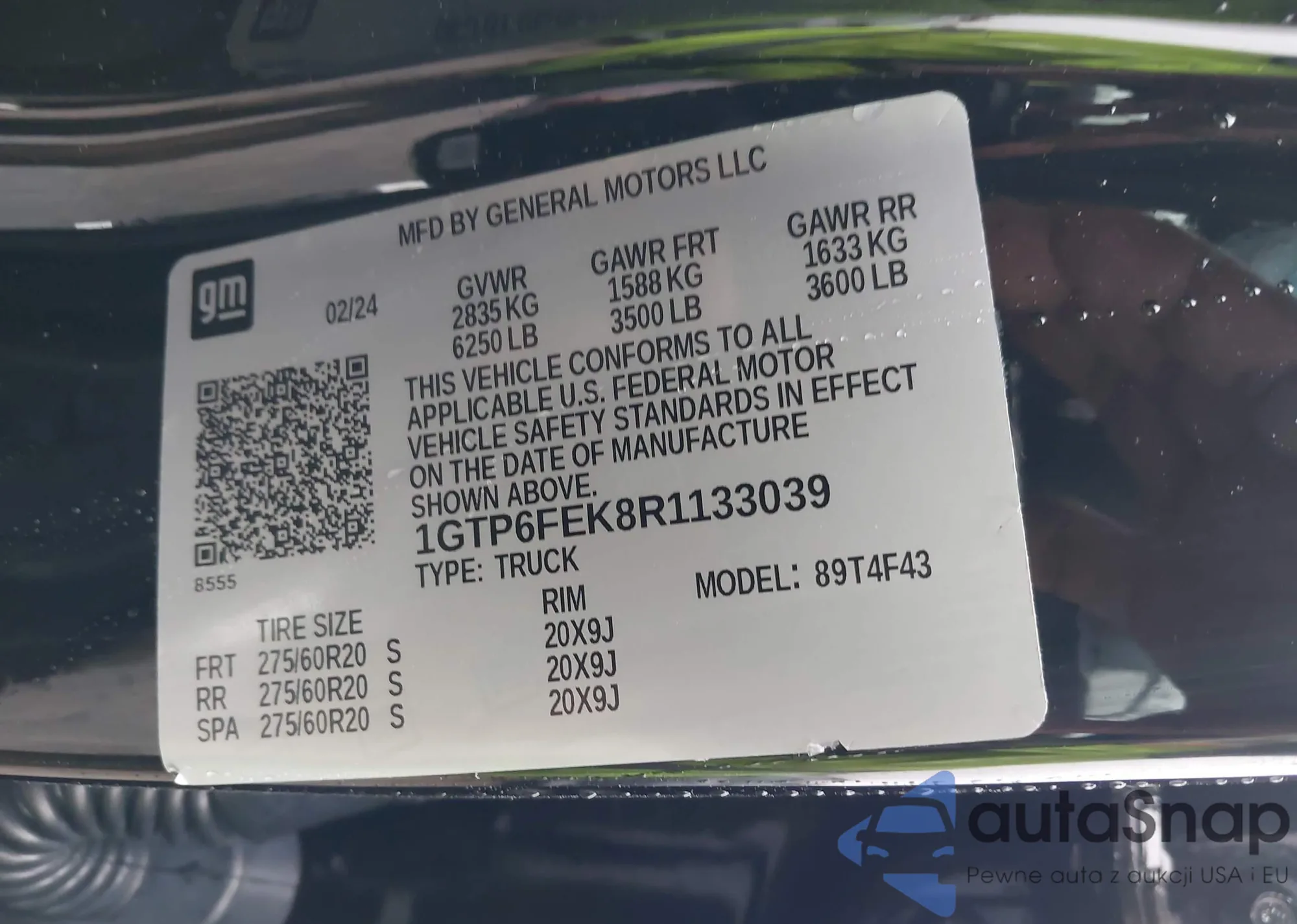 • VIN 1GTP6FEK8R1133039