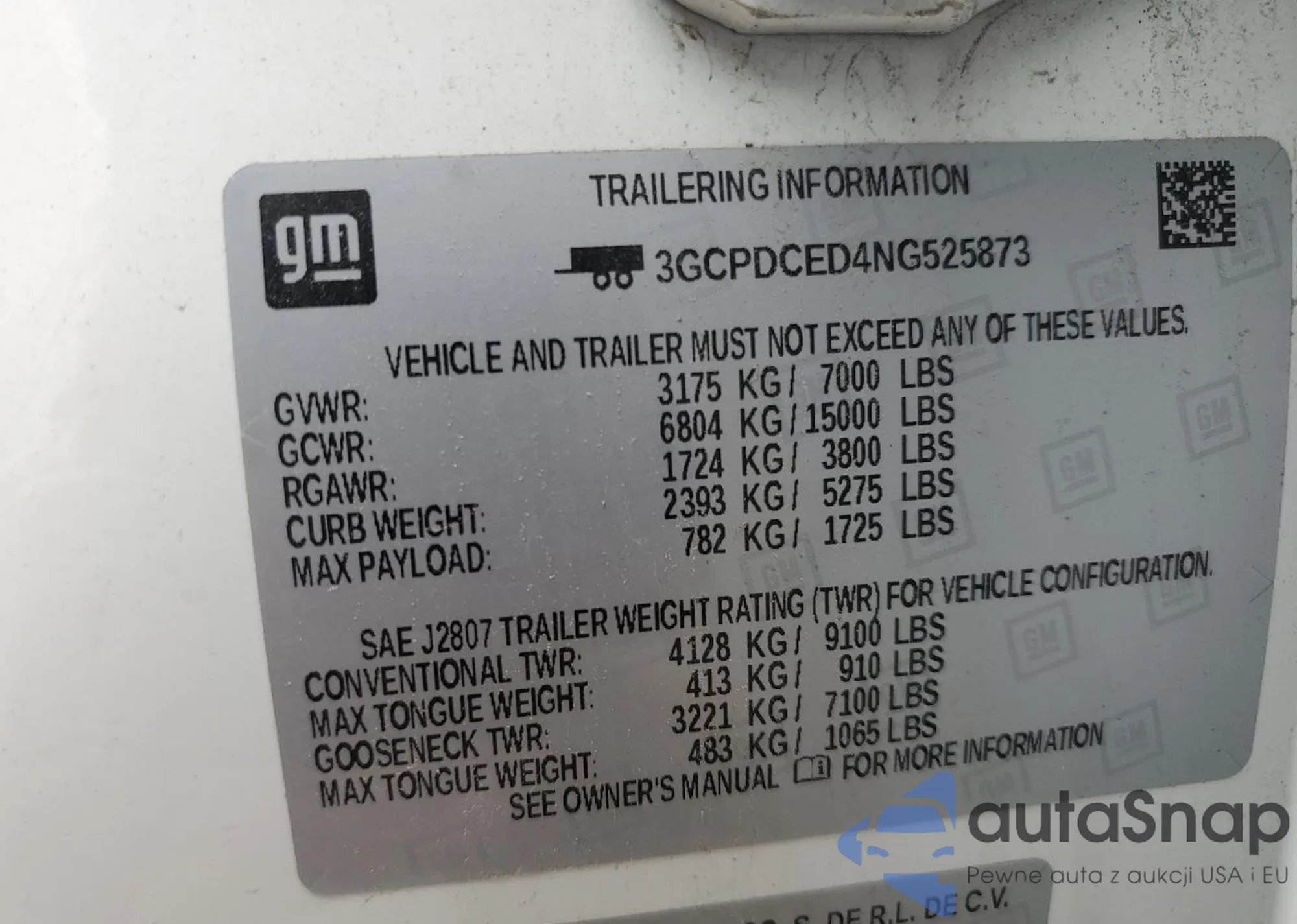• VIN 3GCPDCED4NG525873
