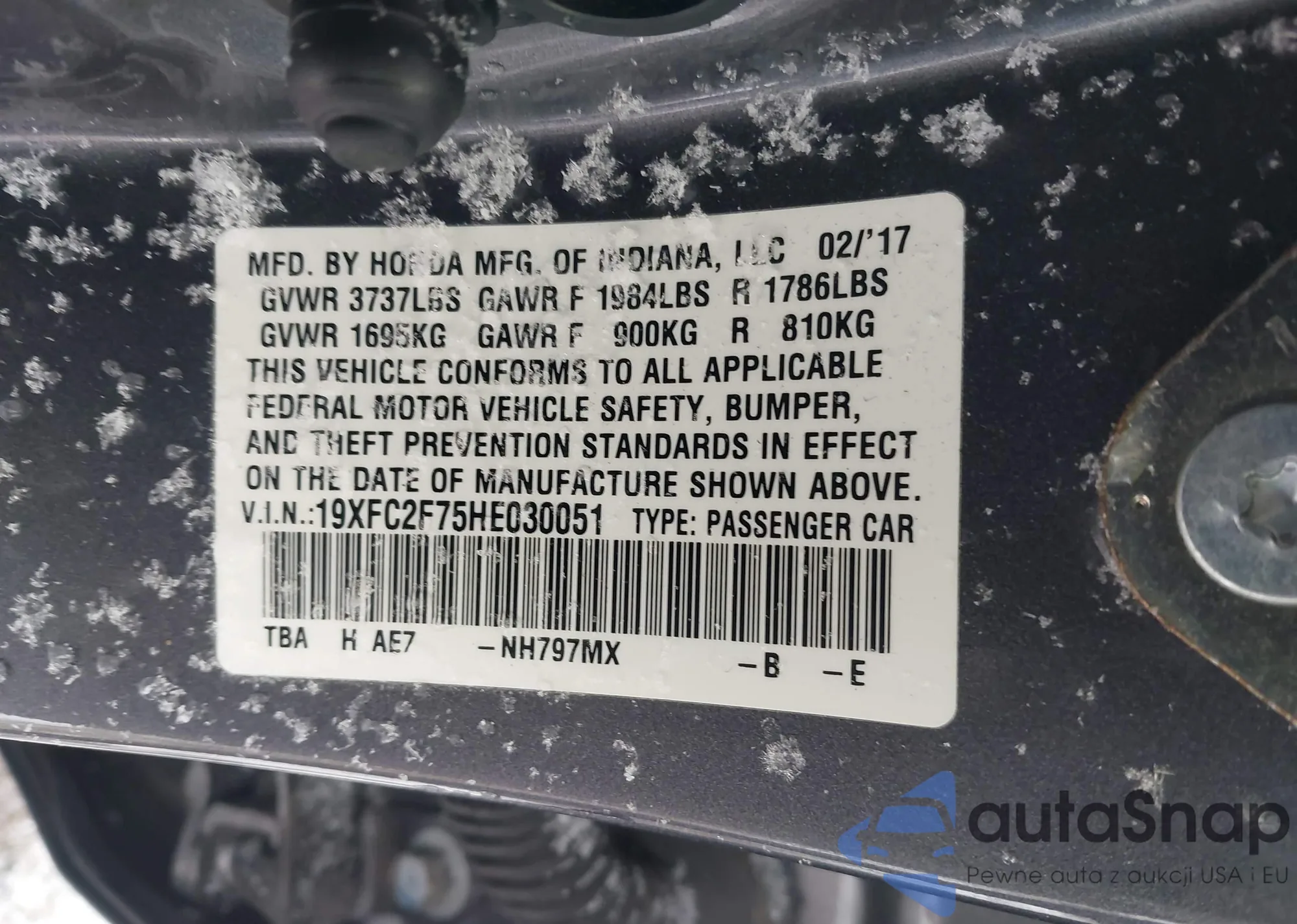 LOT: 40928341 VIN: 19XFC2F75HE030051
