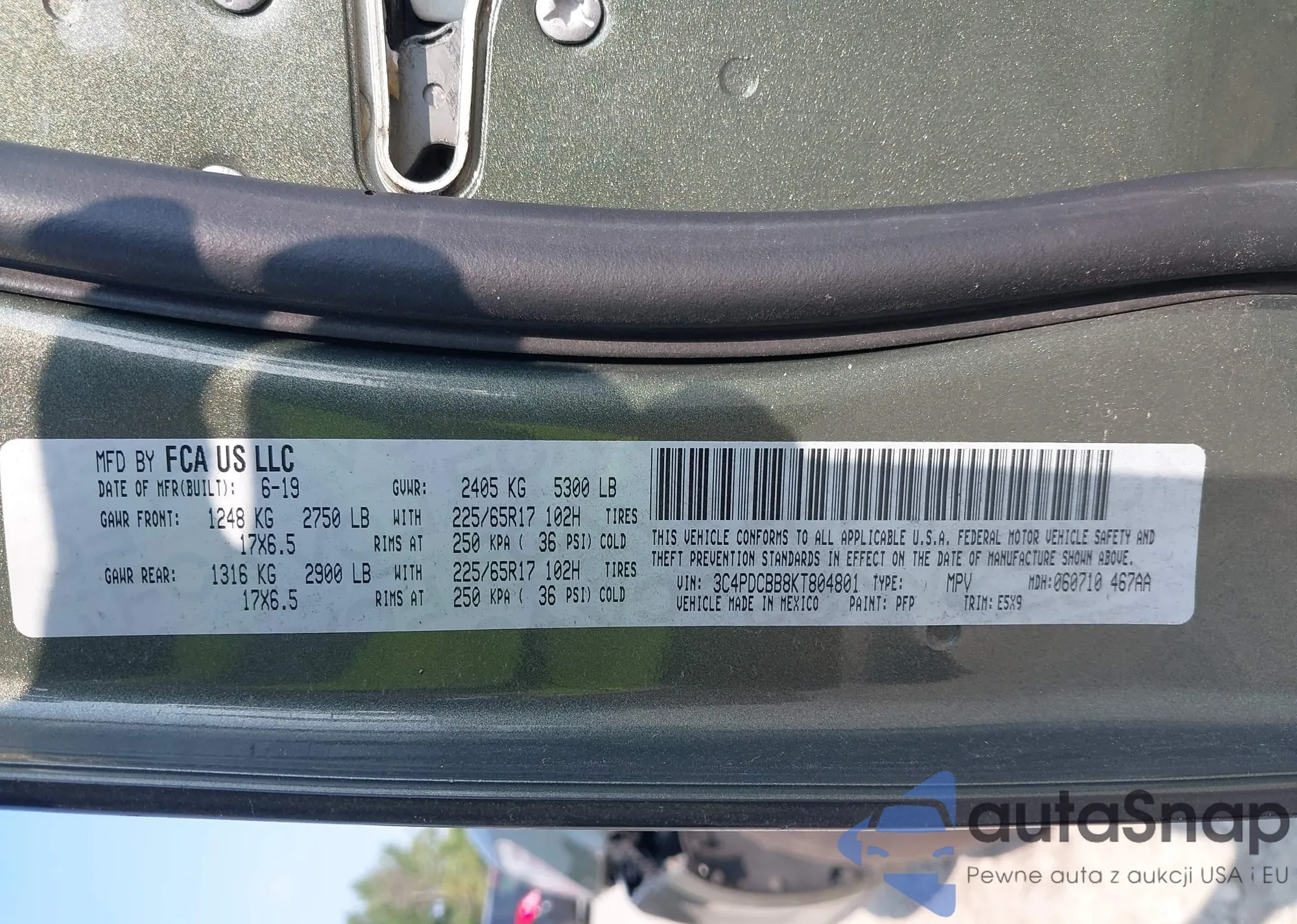 LOT: 39937092 VIN: 3C4PDCBB8KT804801