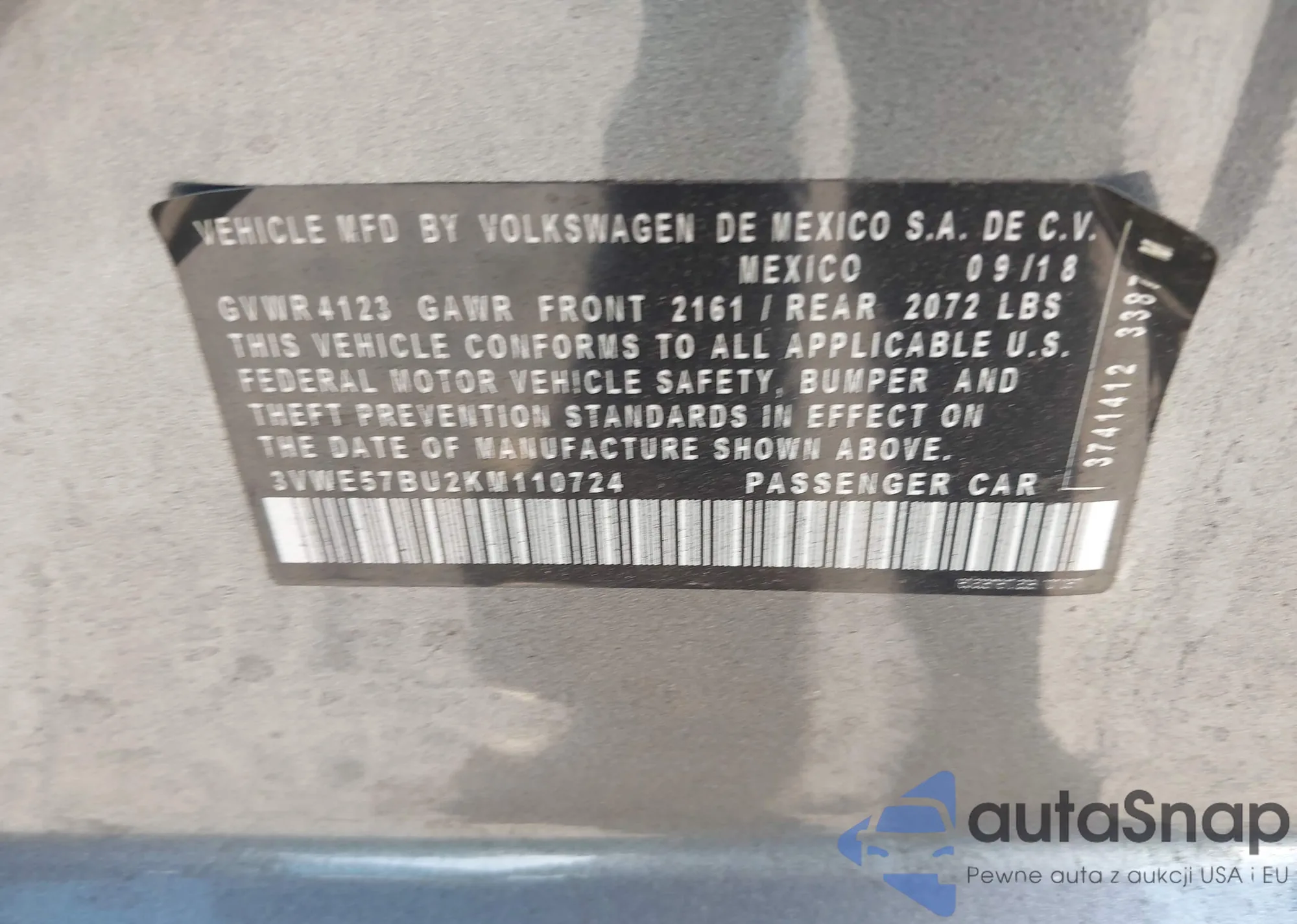 • VIN 3VWE57BU2KM110724