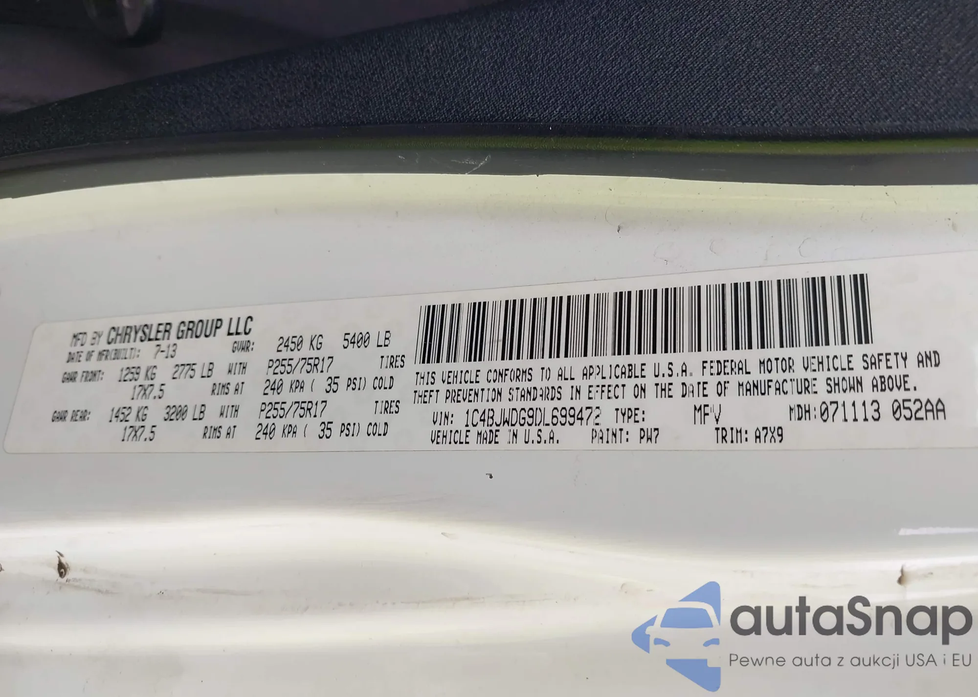 • VIN 1C4BJWDG9DL699472