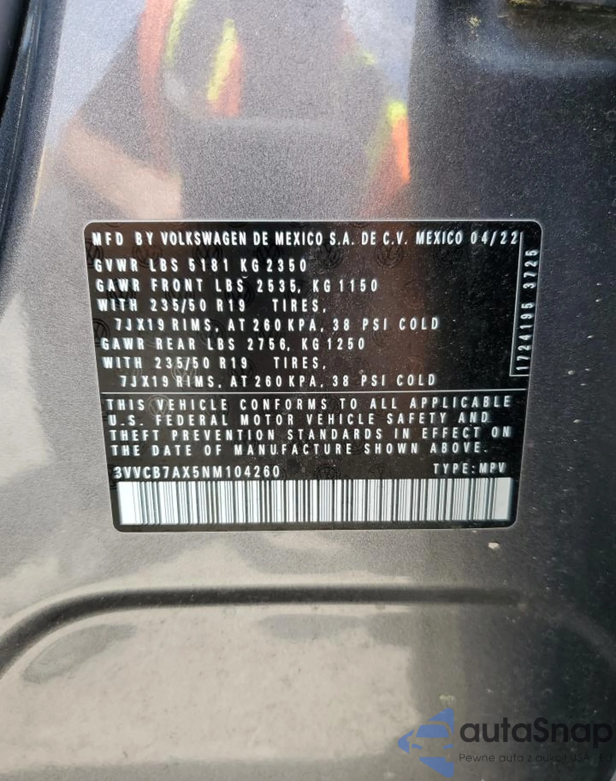 • VIN 3VVCB7AX5NM104260