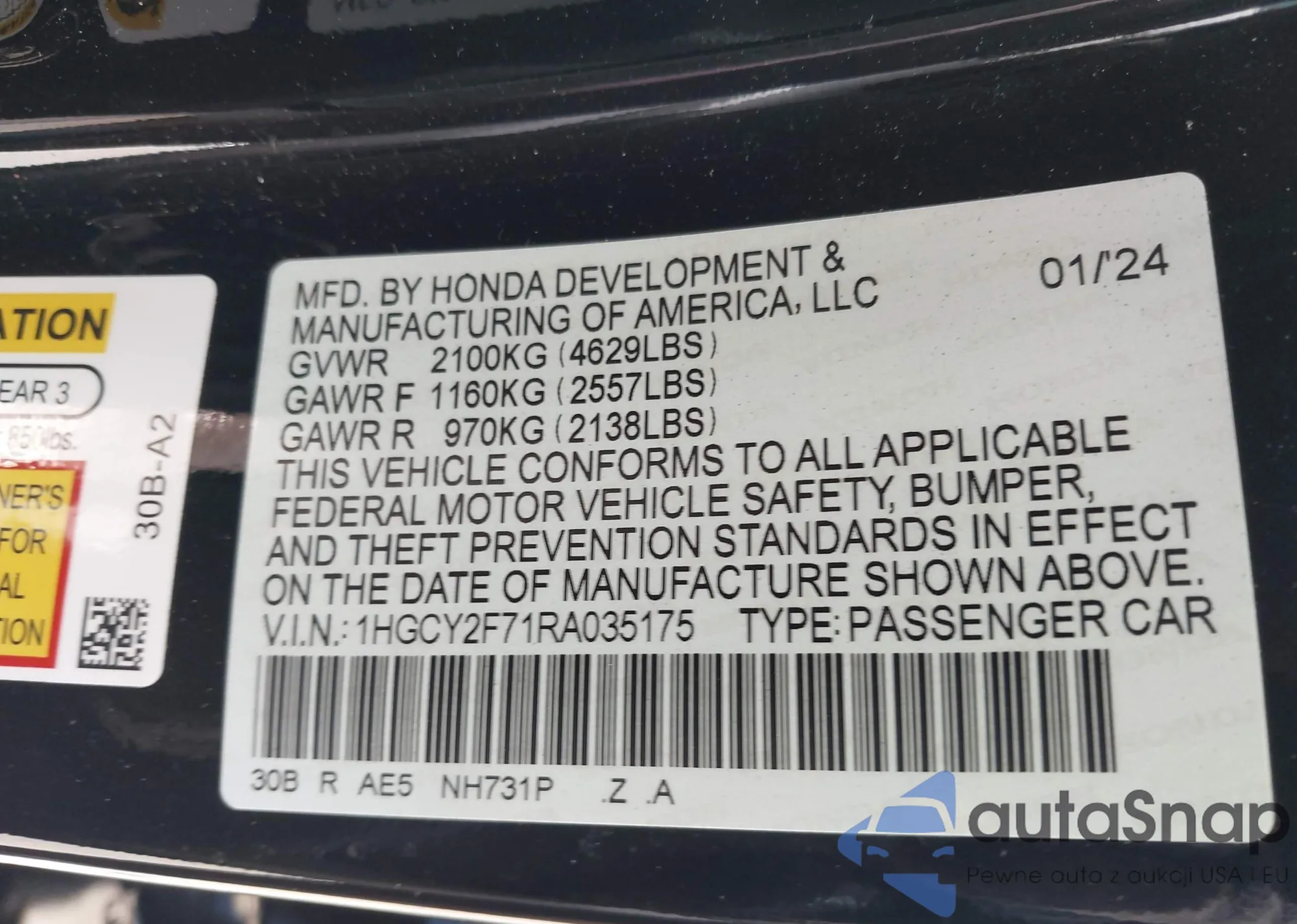 • VIN 1HGCY2F71RA035175