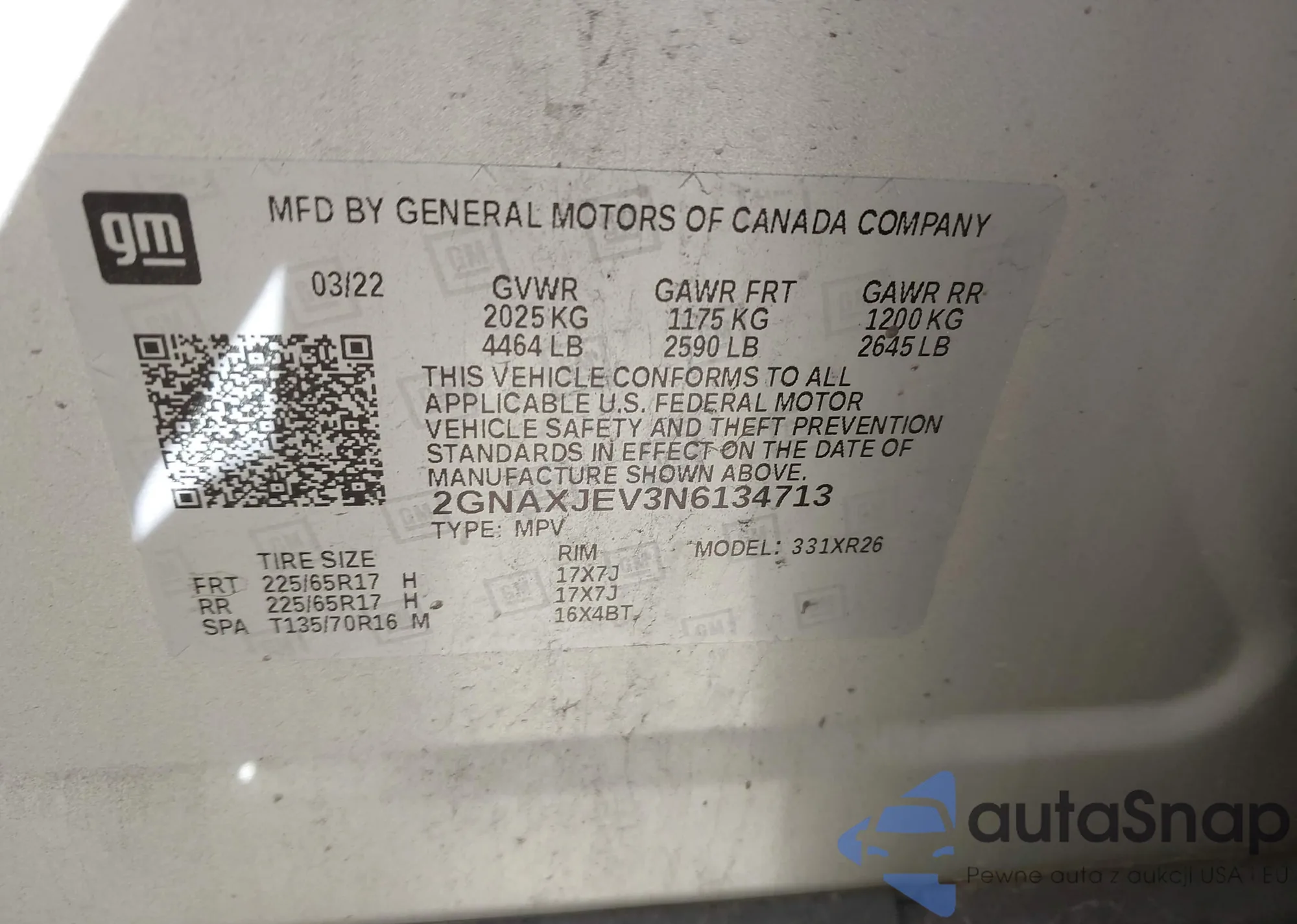 LOT: 42043383 VIN: 2GNAXJEV3N6134713