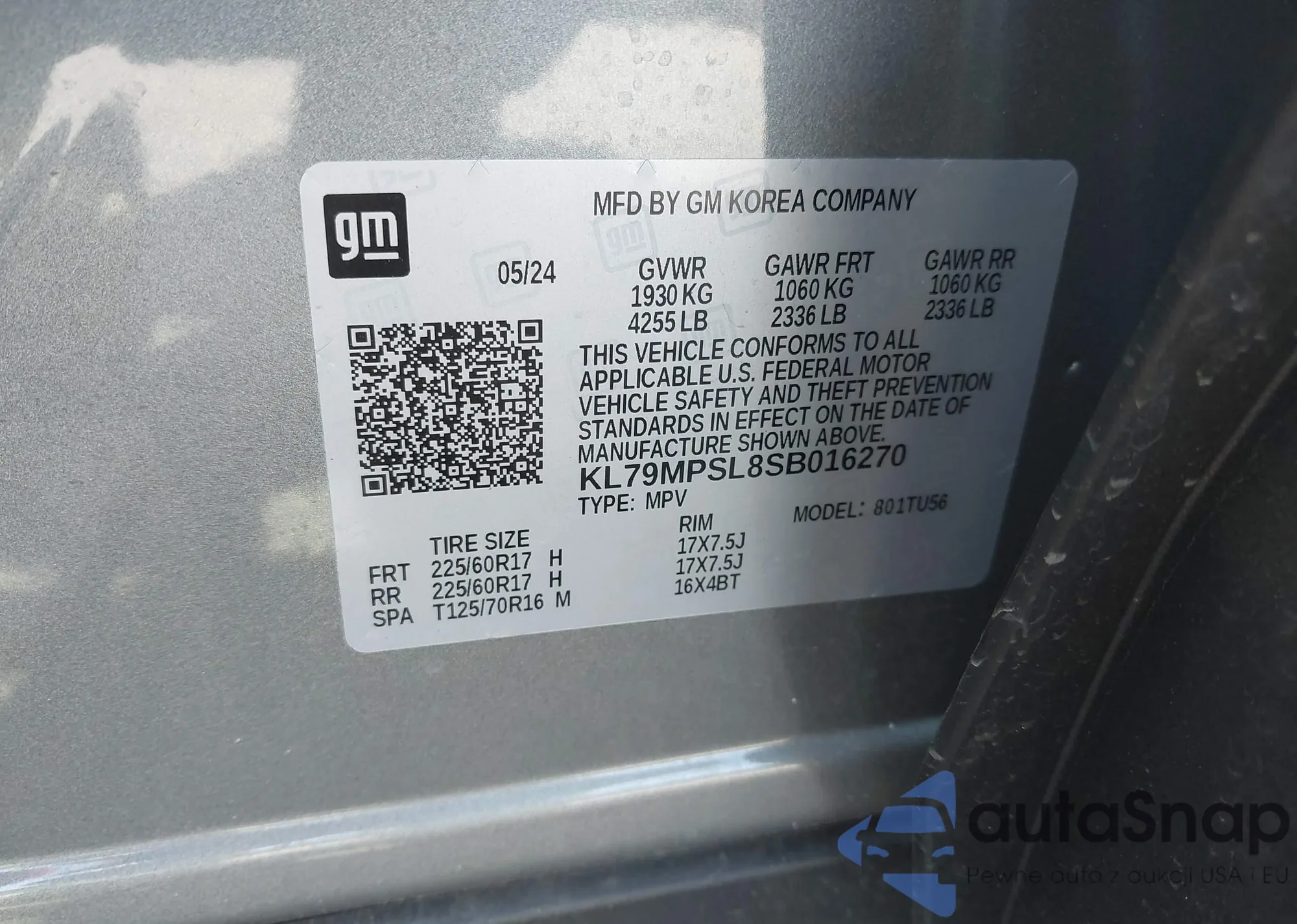 • VIN KL79MPSL8SB016270