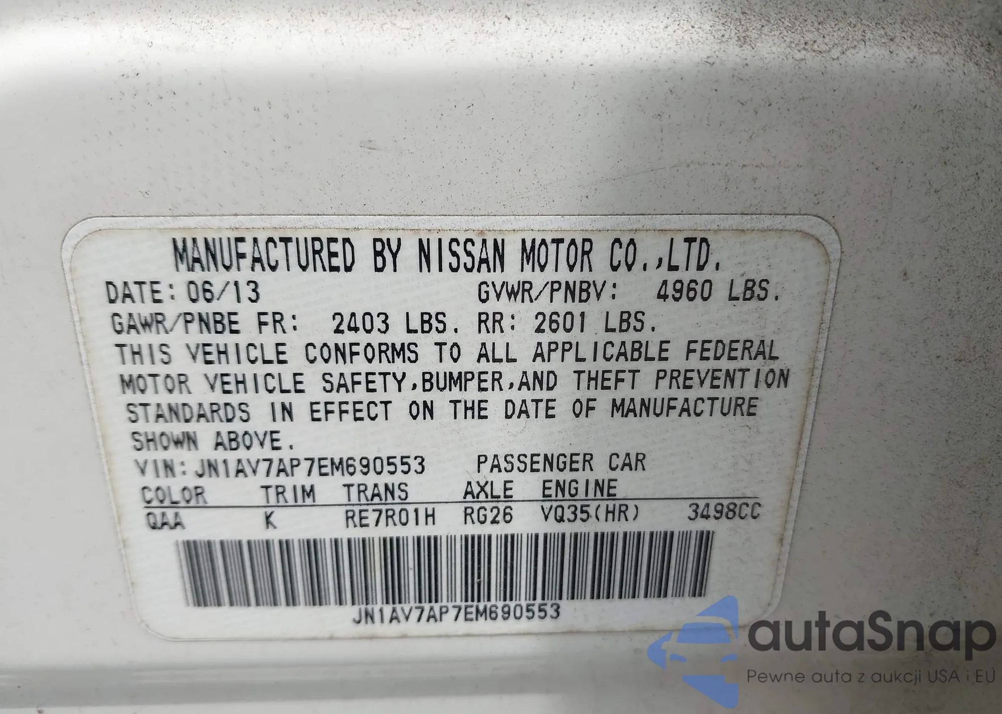 LOT: 42196341 VIN: JN1AV7AP7EM690553