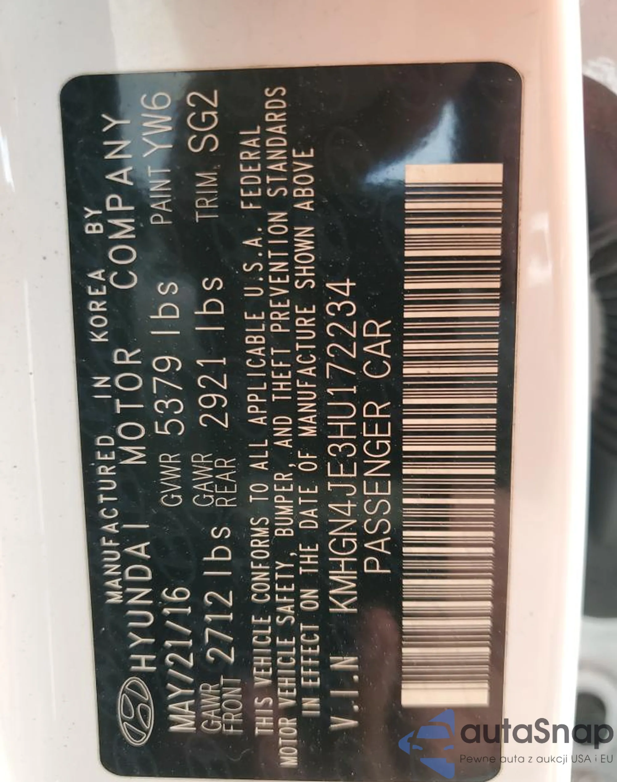 LOT: 54391155 VIN: KMHGN4JE3HU172234