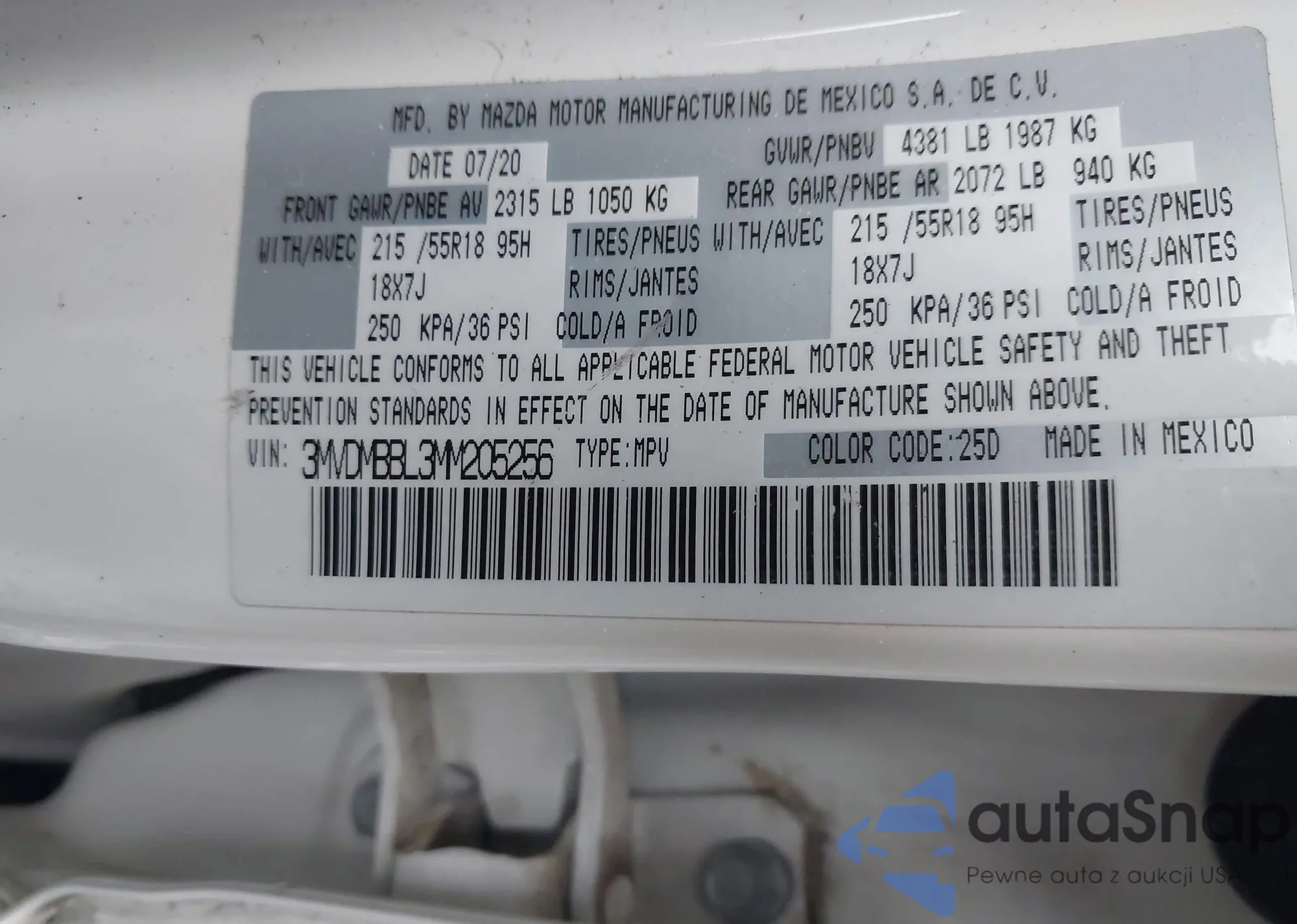 LOT: 41302313 VIN: 3MVDMBBL3MM205256