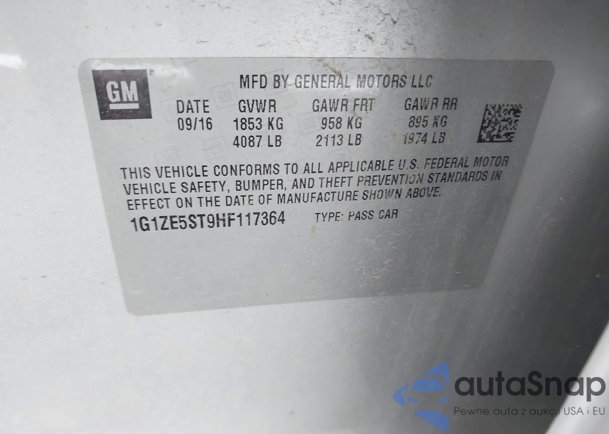 • VIN 1G1ZE5ST9HF117364