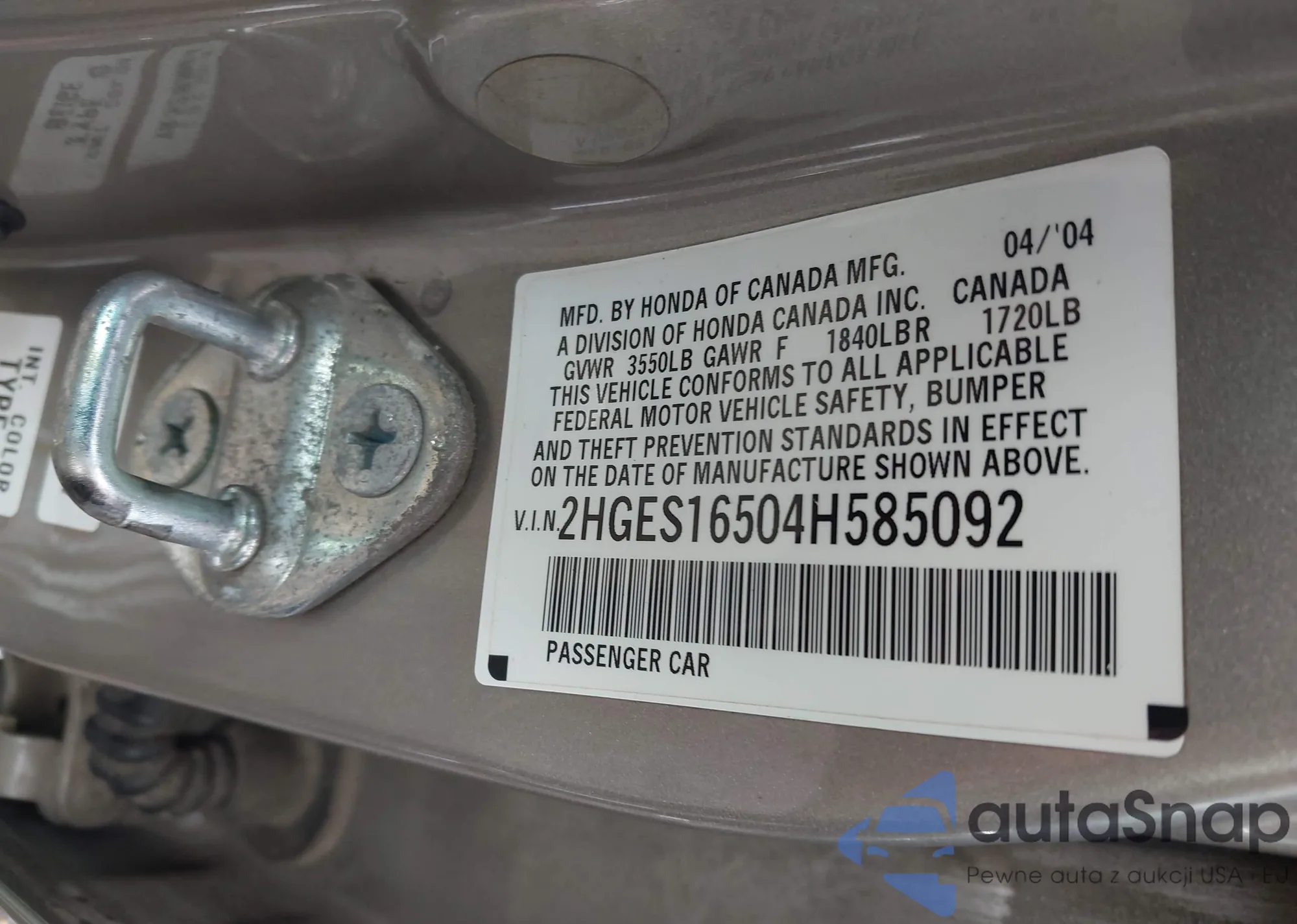 LOT: 42197232 VIN: 2HGES16504H585092