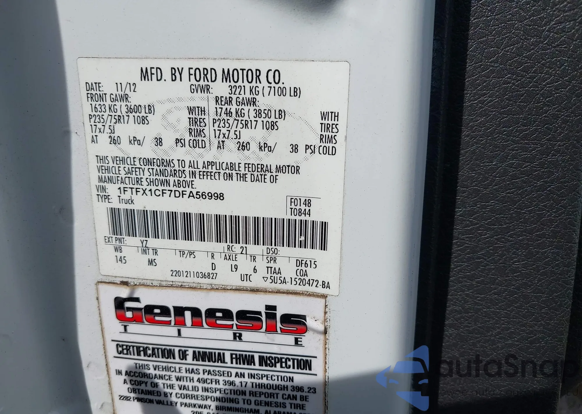 • VIN 1FTFX1CF7DFA56998