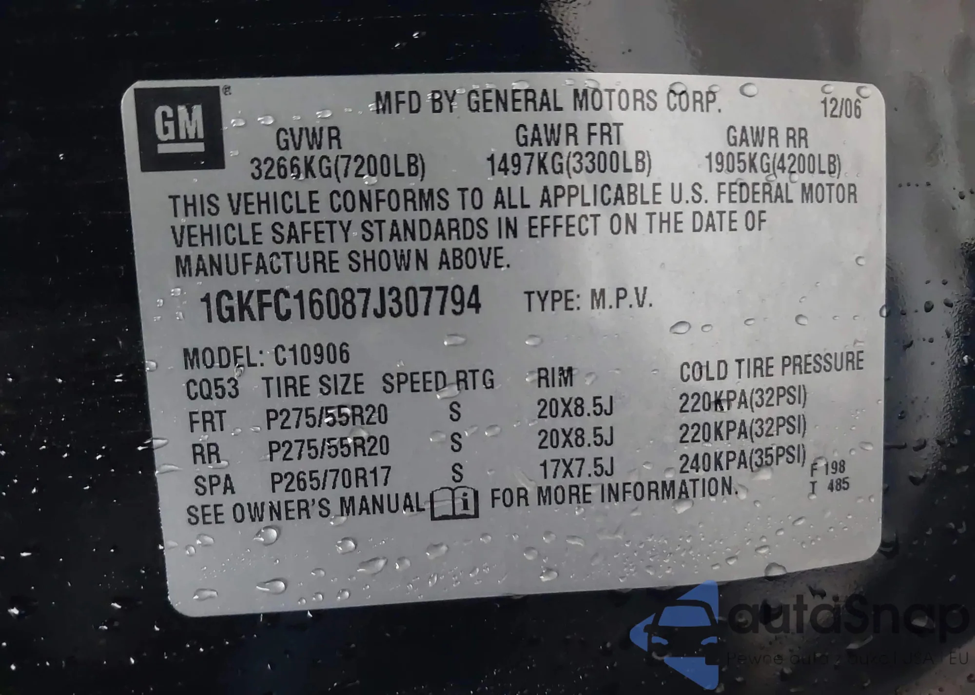 LOT: 42111880 VIN: 1GKFC16087J307794