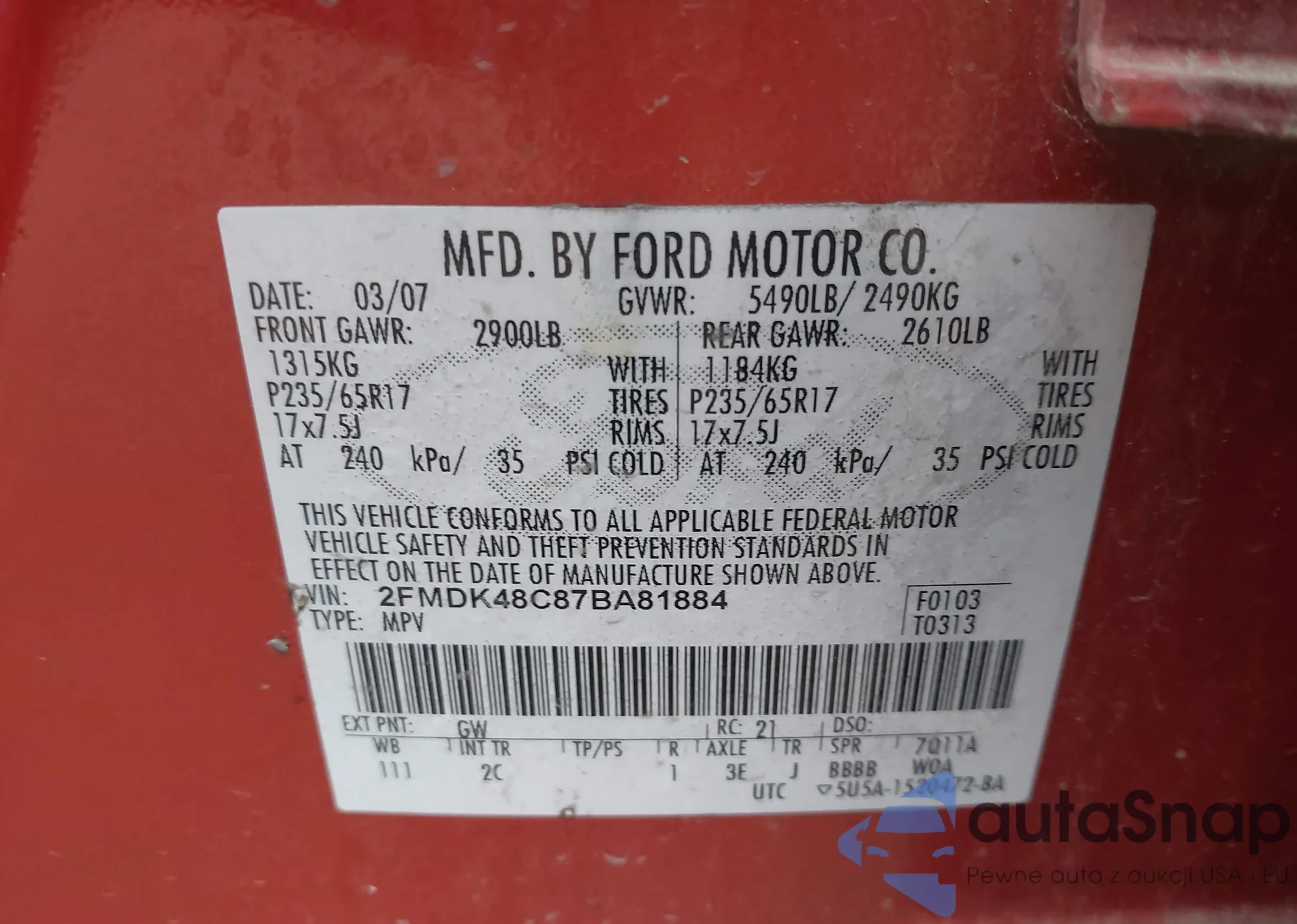 • VIN 2FMDK48C87BA81884