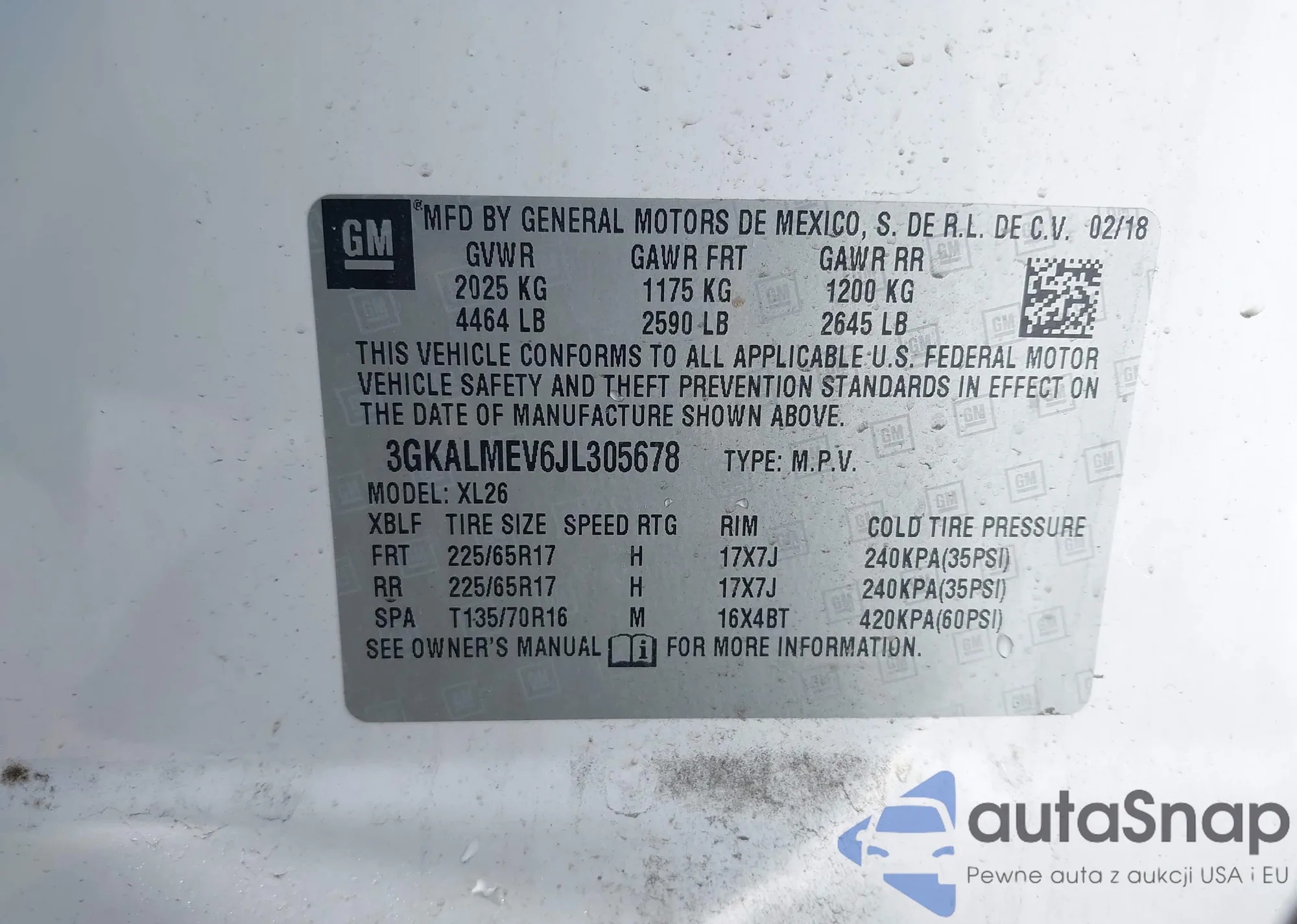 • VIN 3GKALMEV6JL305678