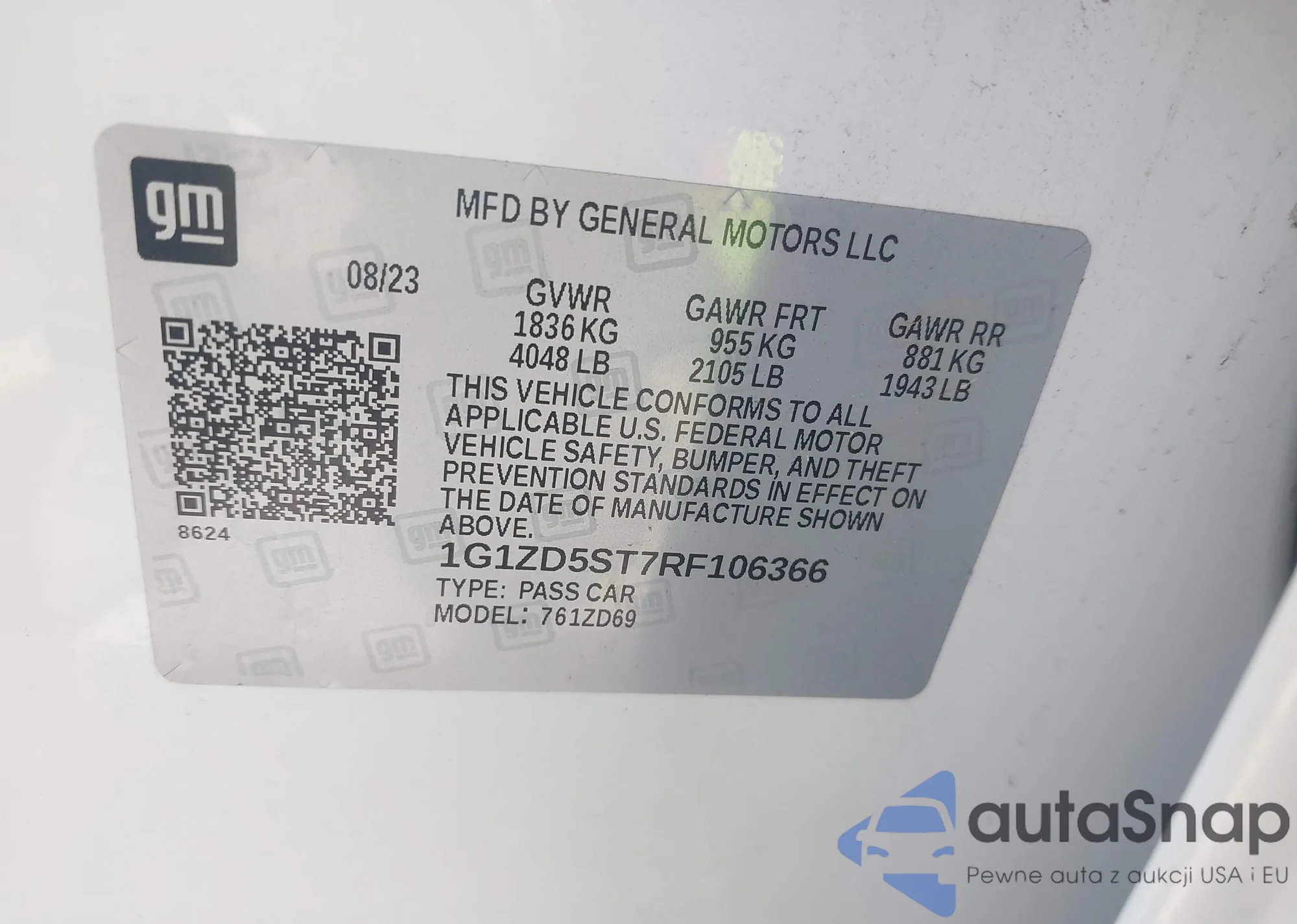 • VIN 1G1ZD5ST7RF106366