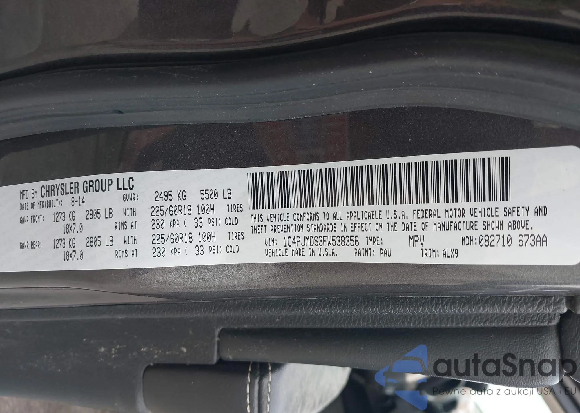 LOT: 42288913 VIN: 1C4PJMDS3FW538356