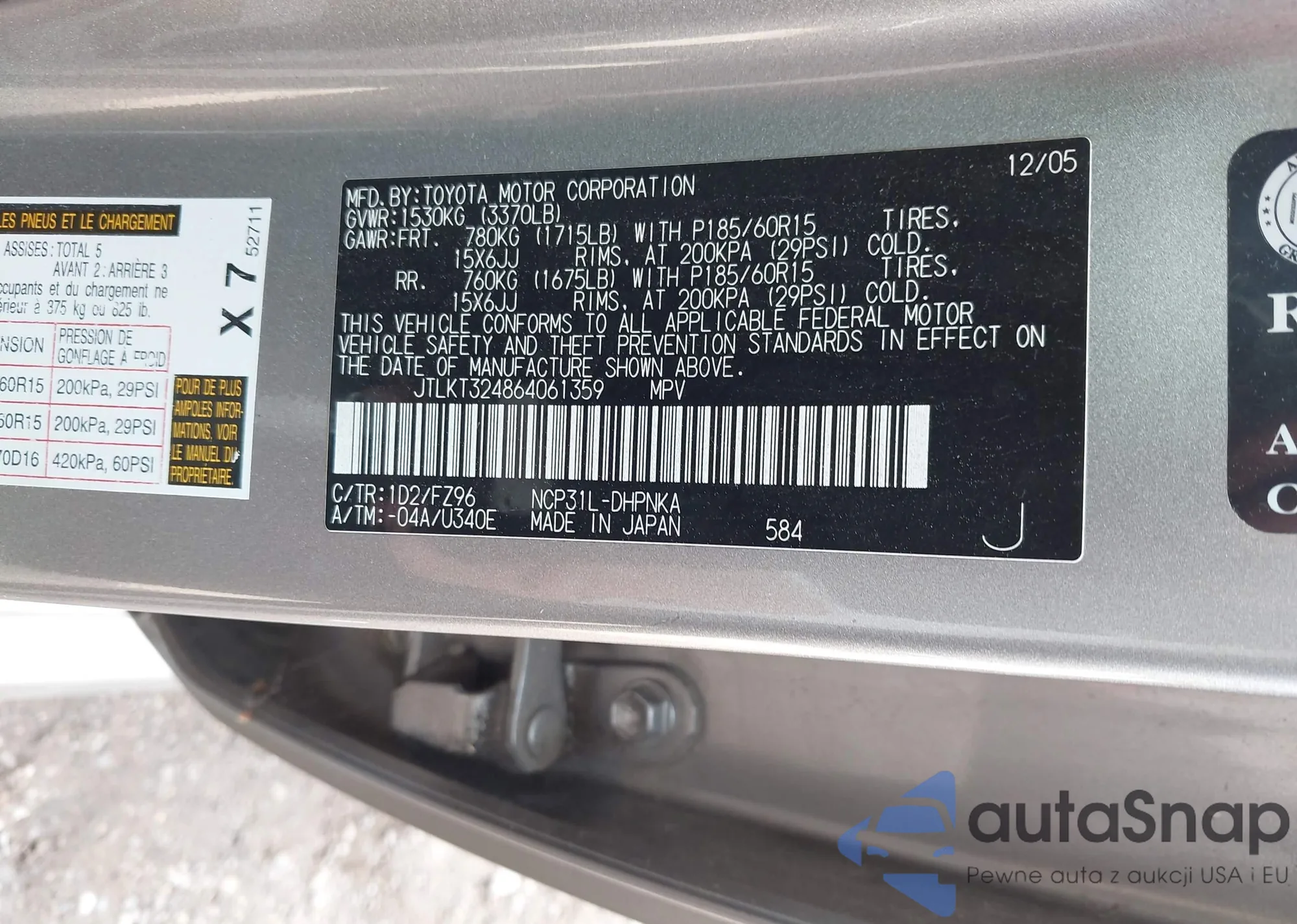 LOT: 42279155 VIN: JTLKT324864061359