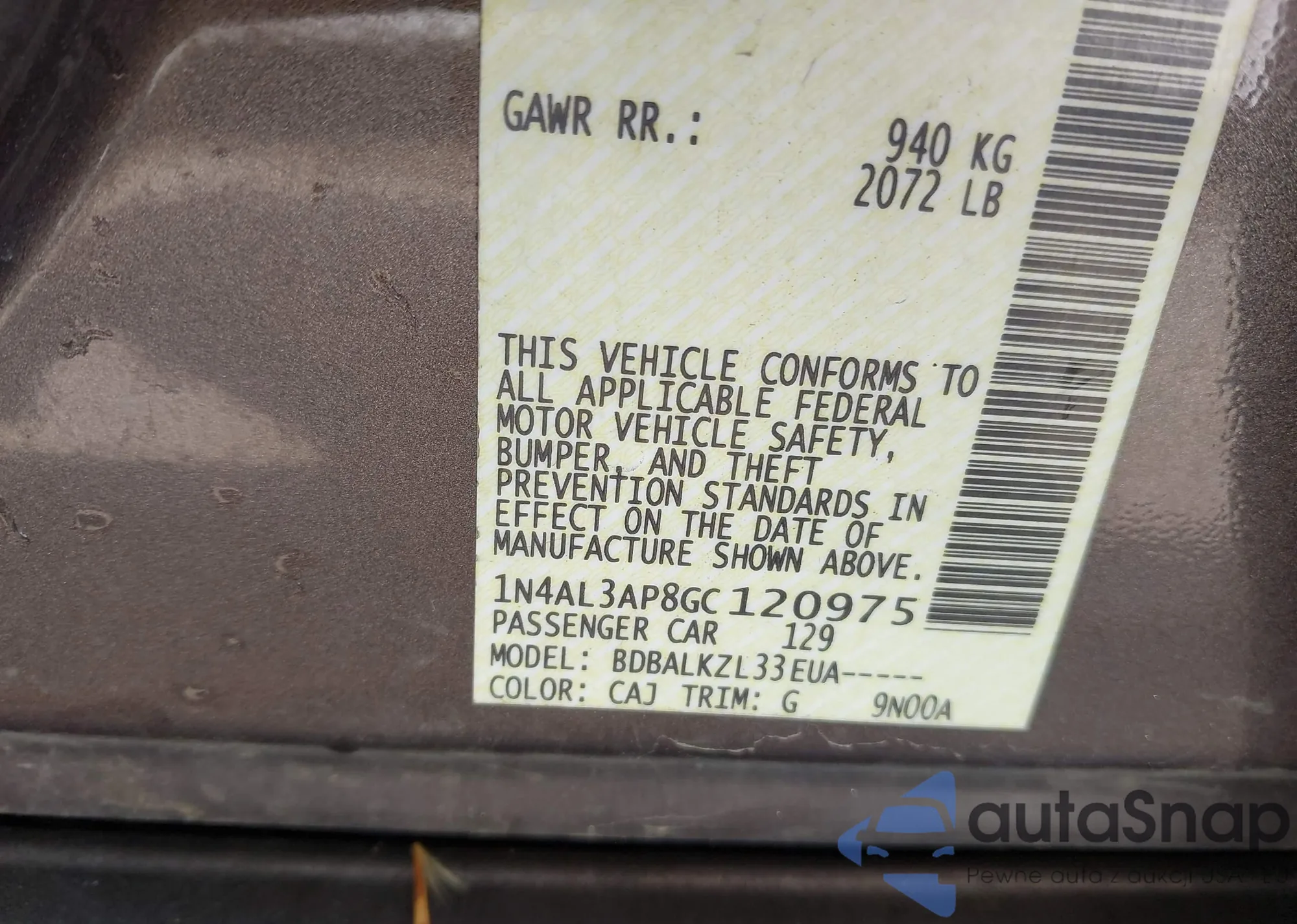 • VIN 1N4AL3AP8GC120975