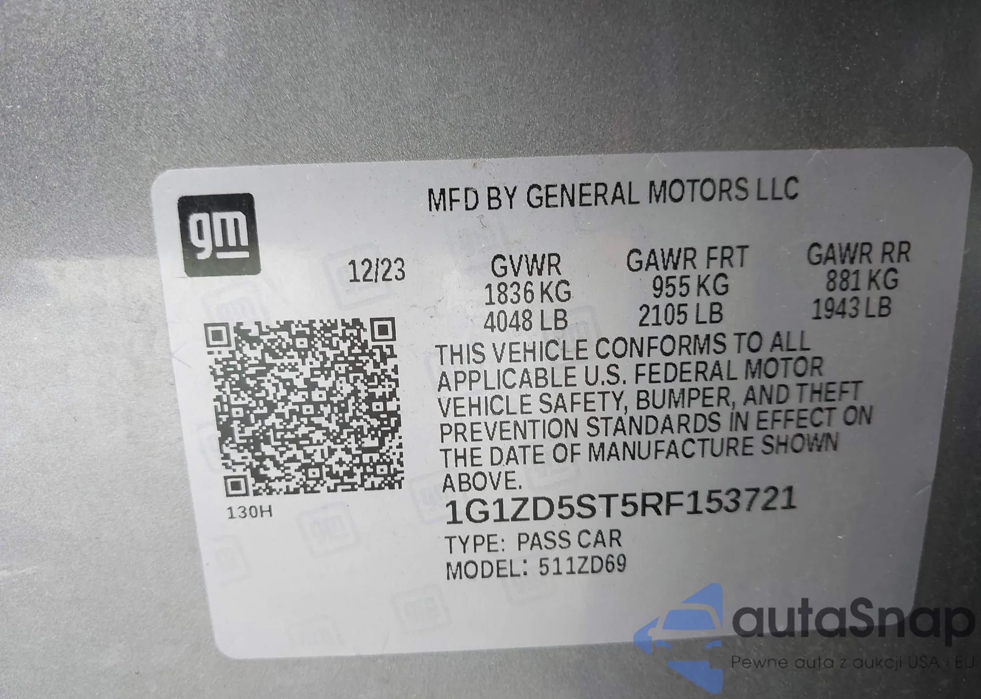 LOT: 42249639 VIN: 1G1ZD5ST5RF153721