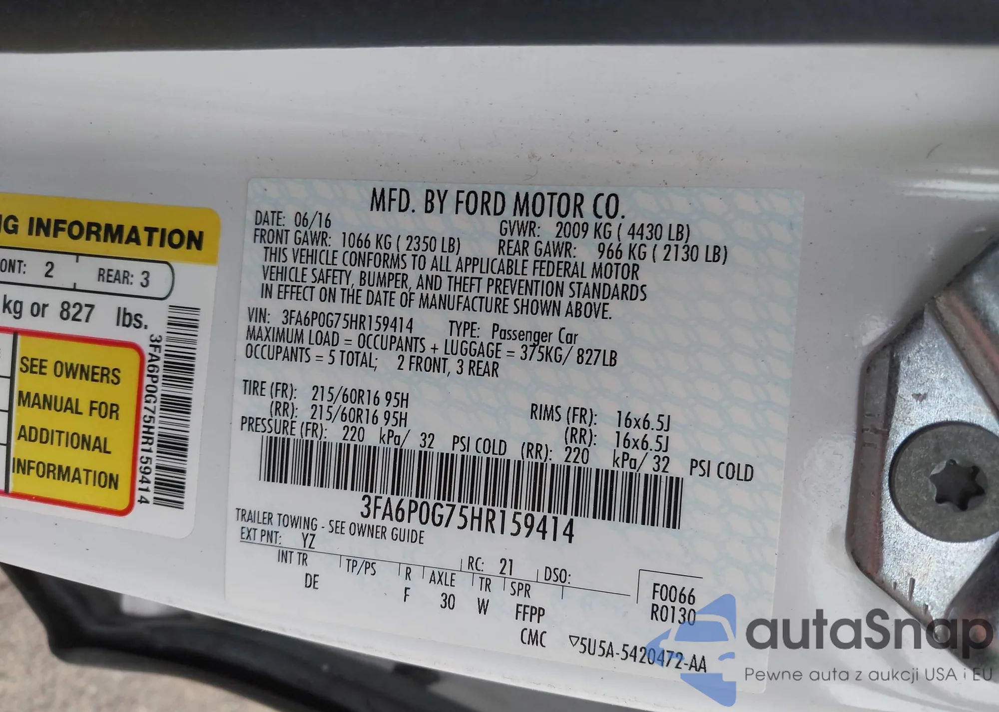 LOT: 42216300 VIN: 4T1BF1FK9FU040984
