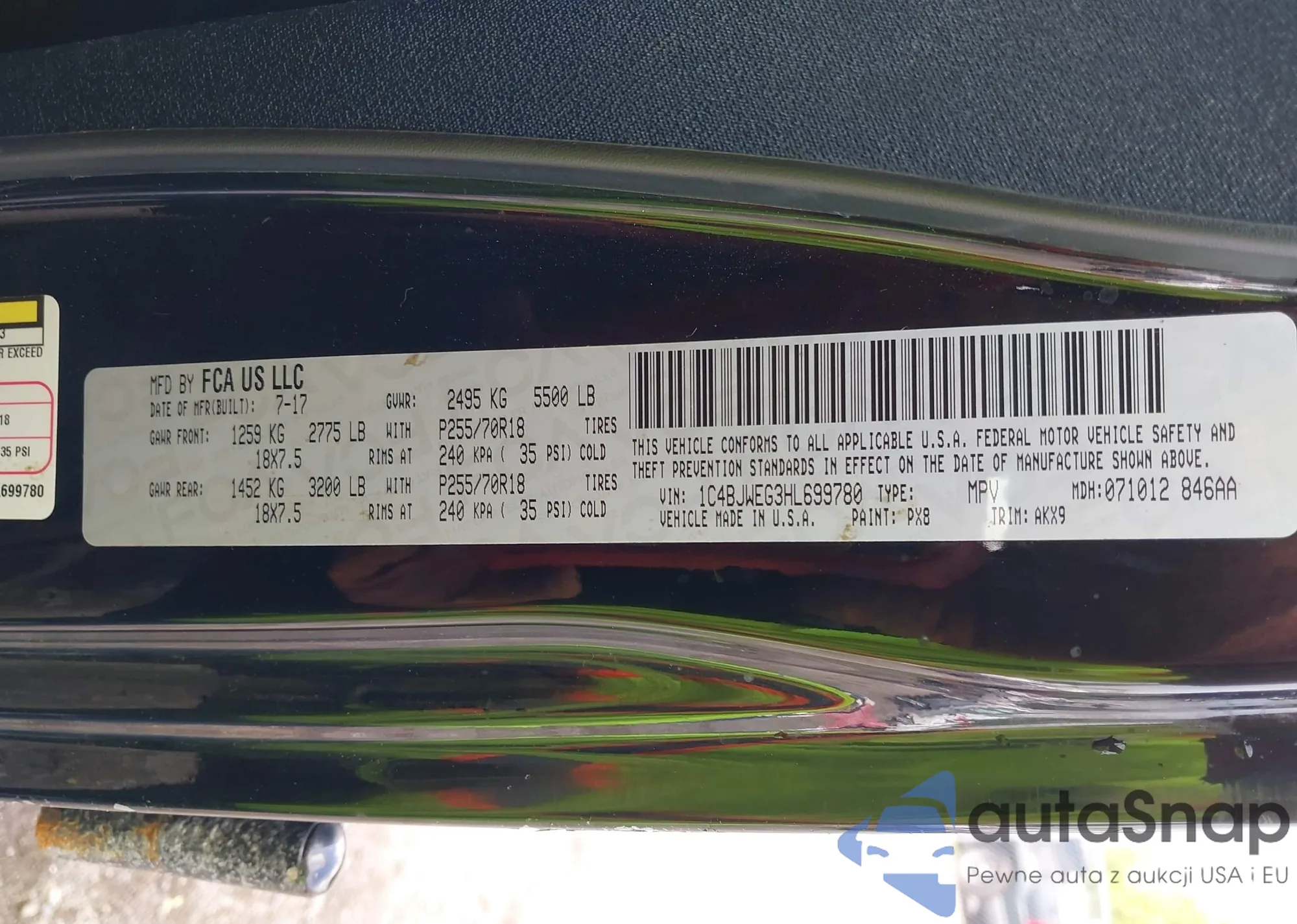 • VIN 1C4BJWEG3HL699780