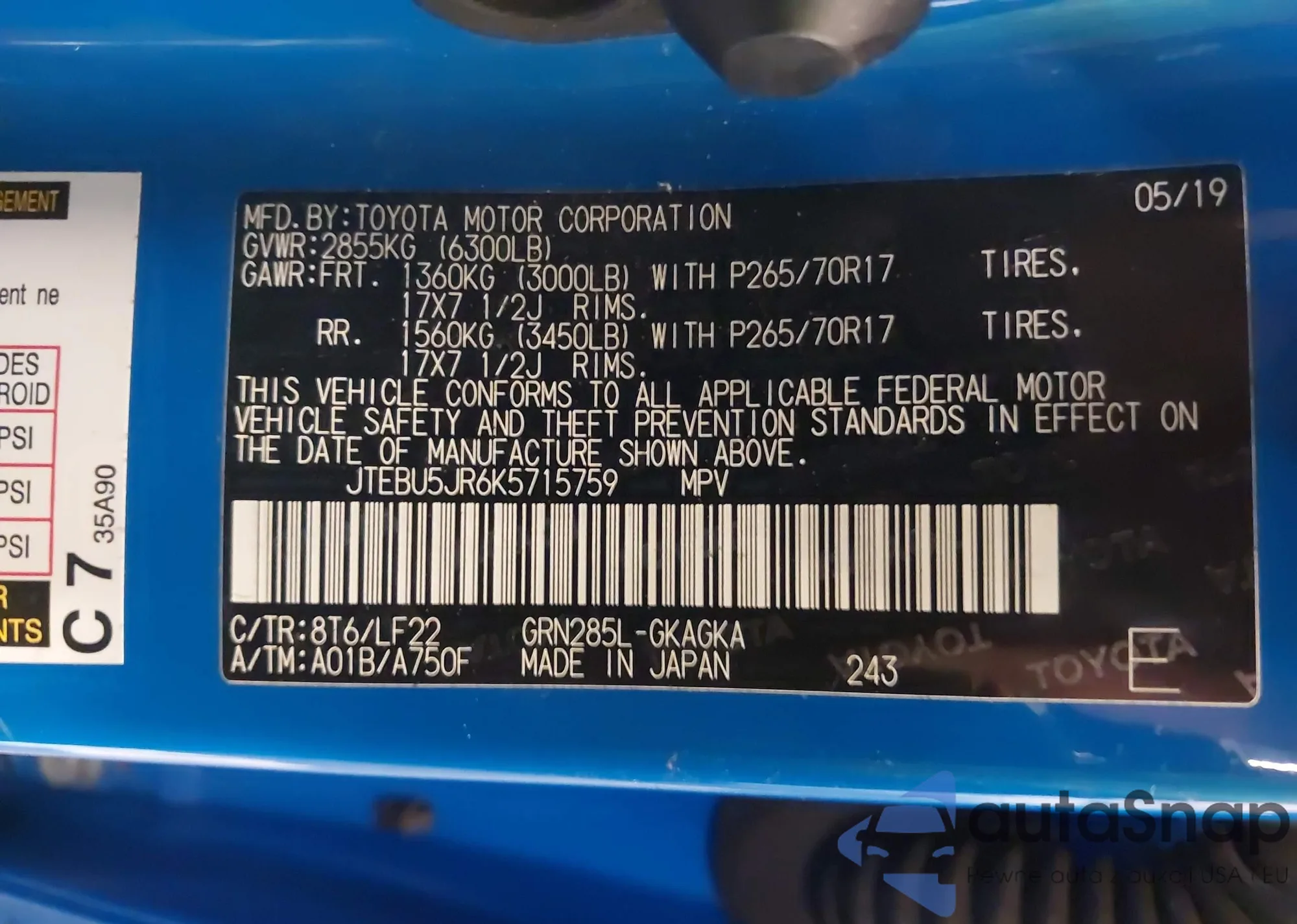 LOT: 40436338 VIN: JTEBU5JR6K5715759