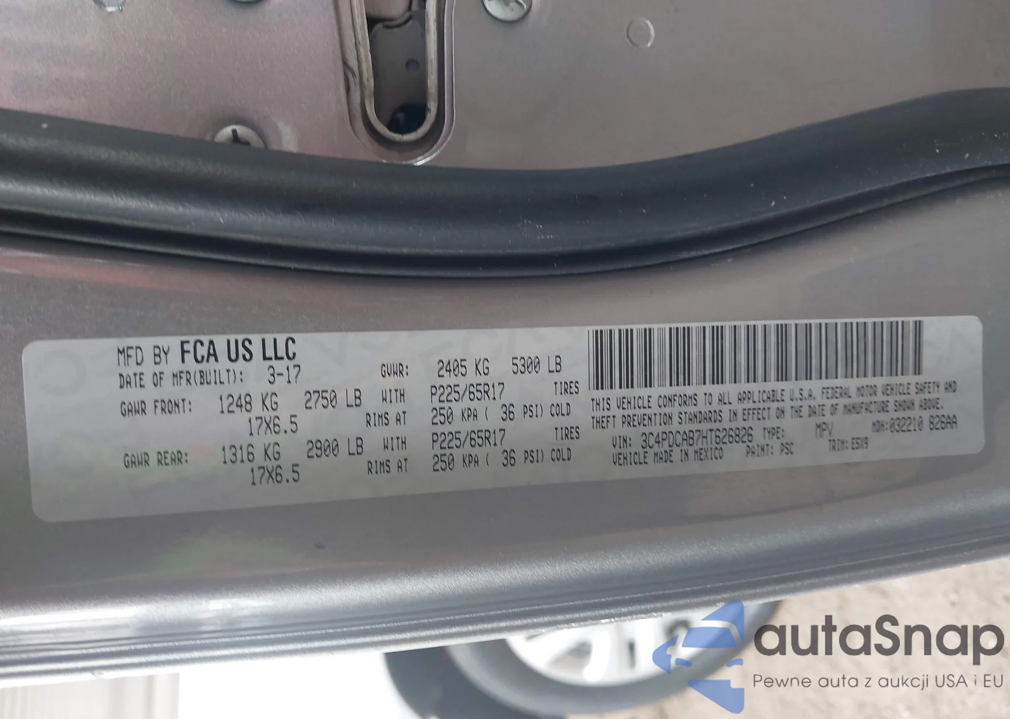LOT: 42208534 VIN: 3C4PDCAB7HT626826