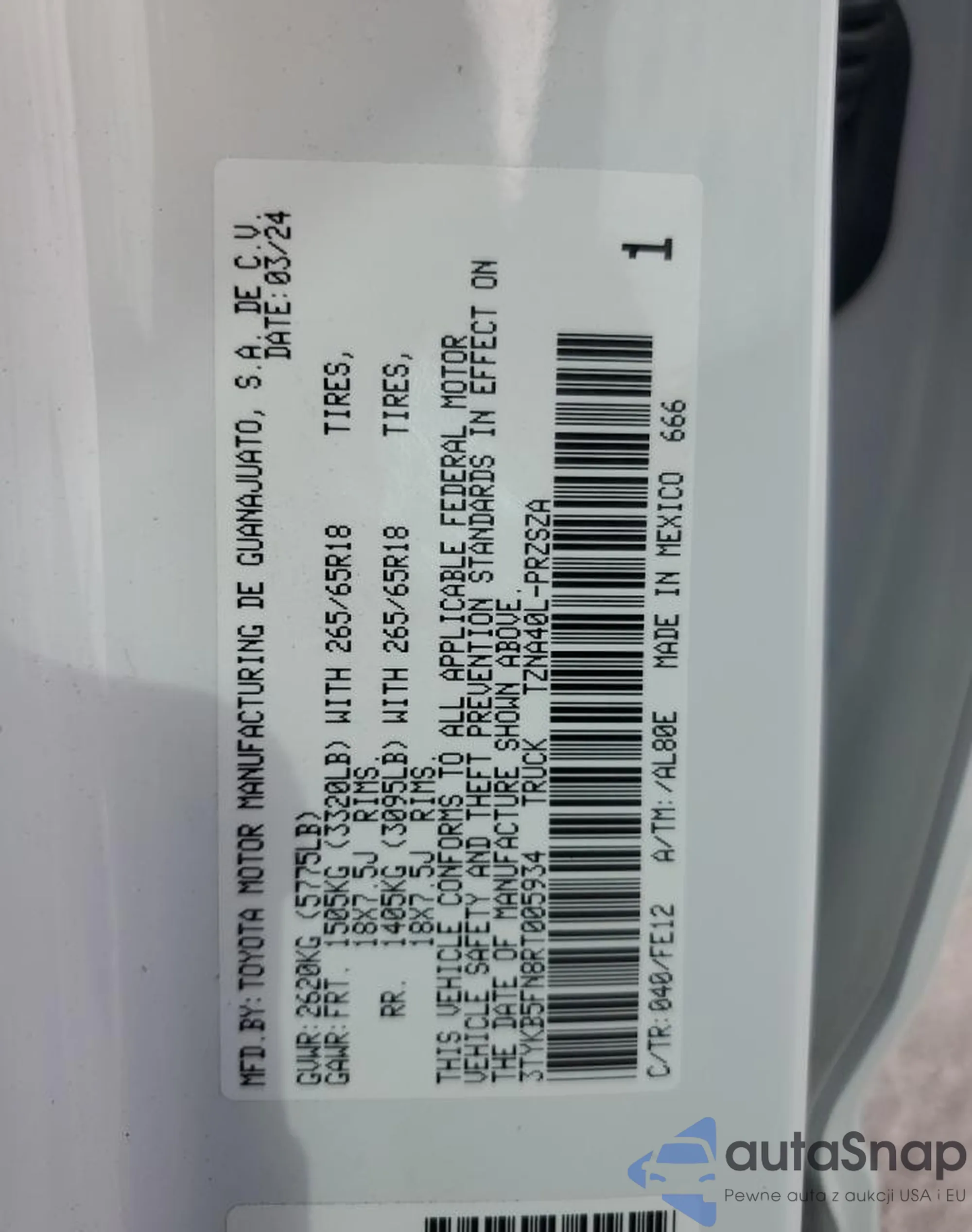 LOT: 51961315 VIN: 4T1F11AK7PU821432